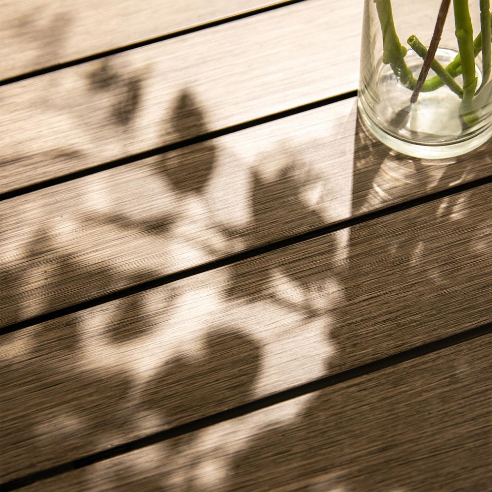 The 90Gǥ Ezra dining table features a versatile silhouette with simple lines and a slatted tabletop. A hand-brushed, taupe grey finish ... more