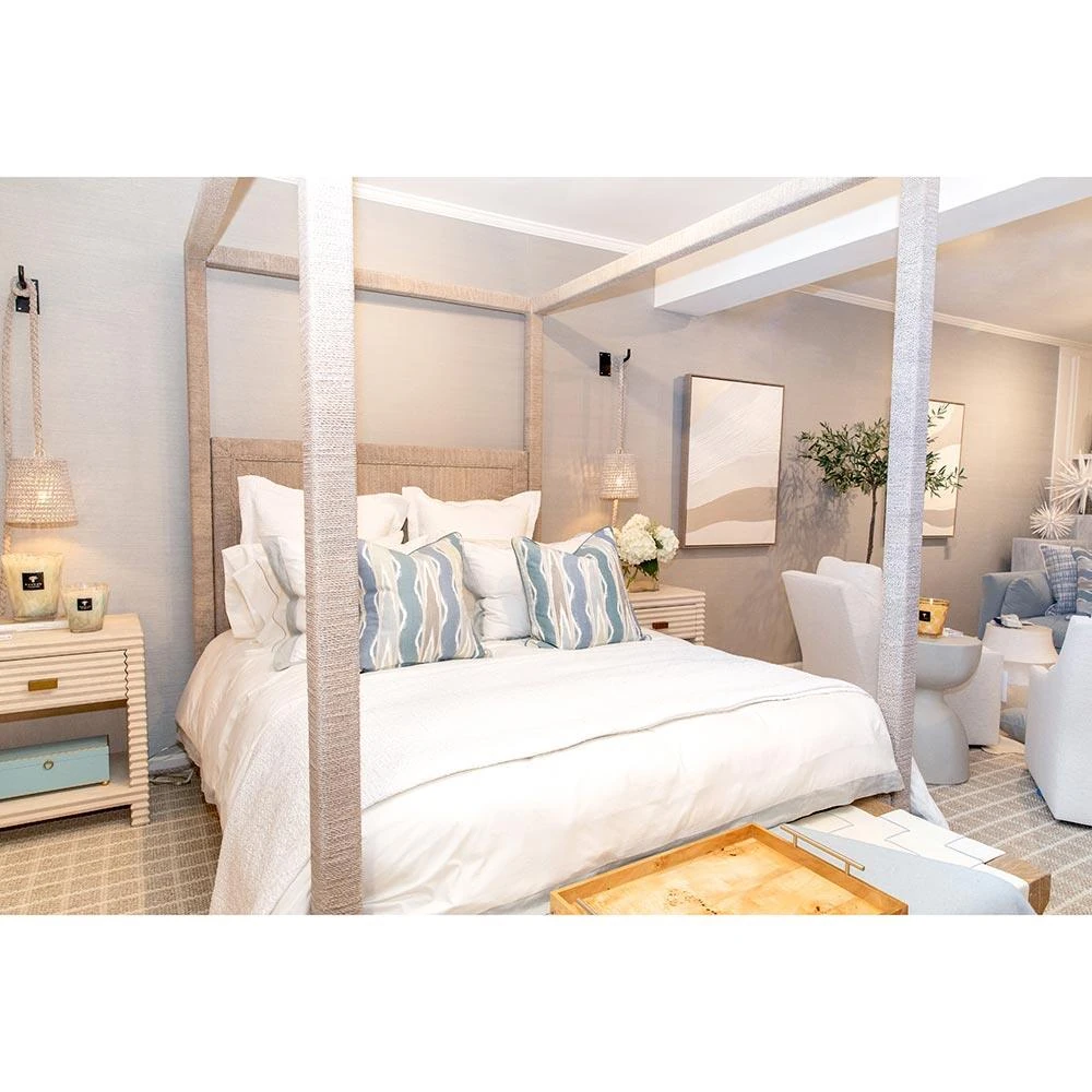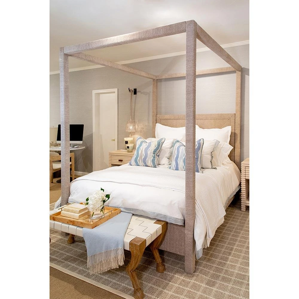 • Palecek Woodside Coastal Beach Natural Seagrass Rope Canopy Bed - Queen|Kathy Kuo Home