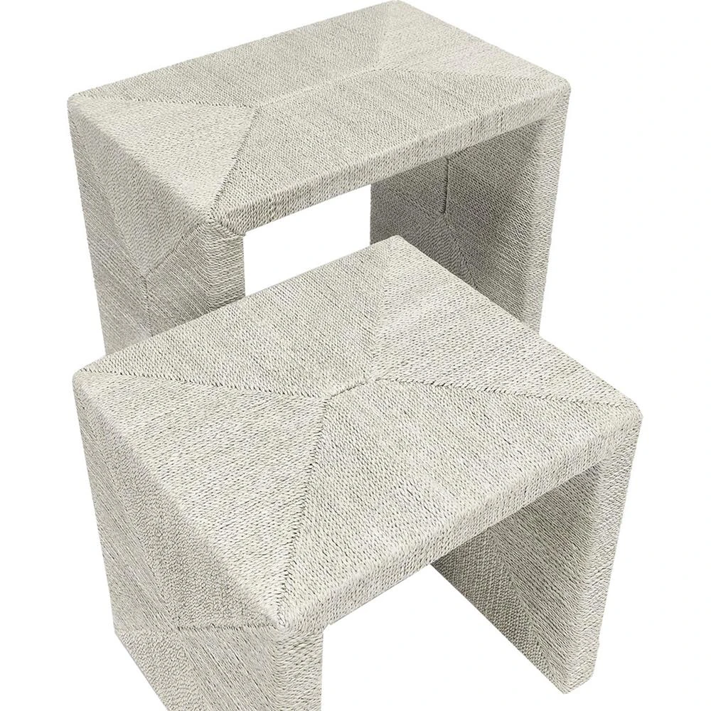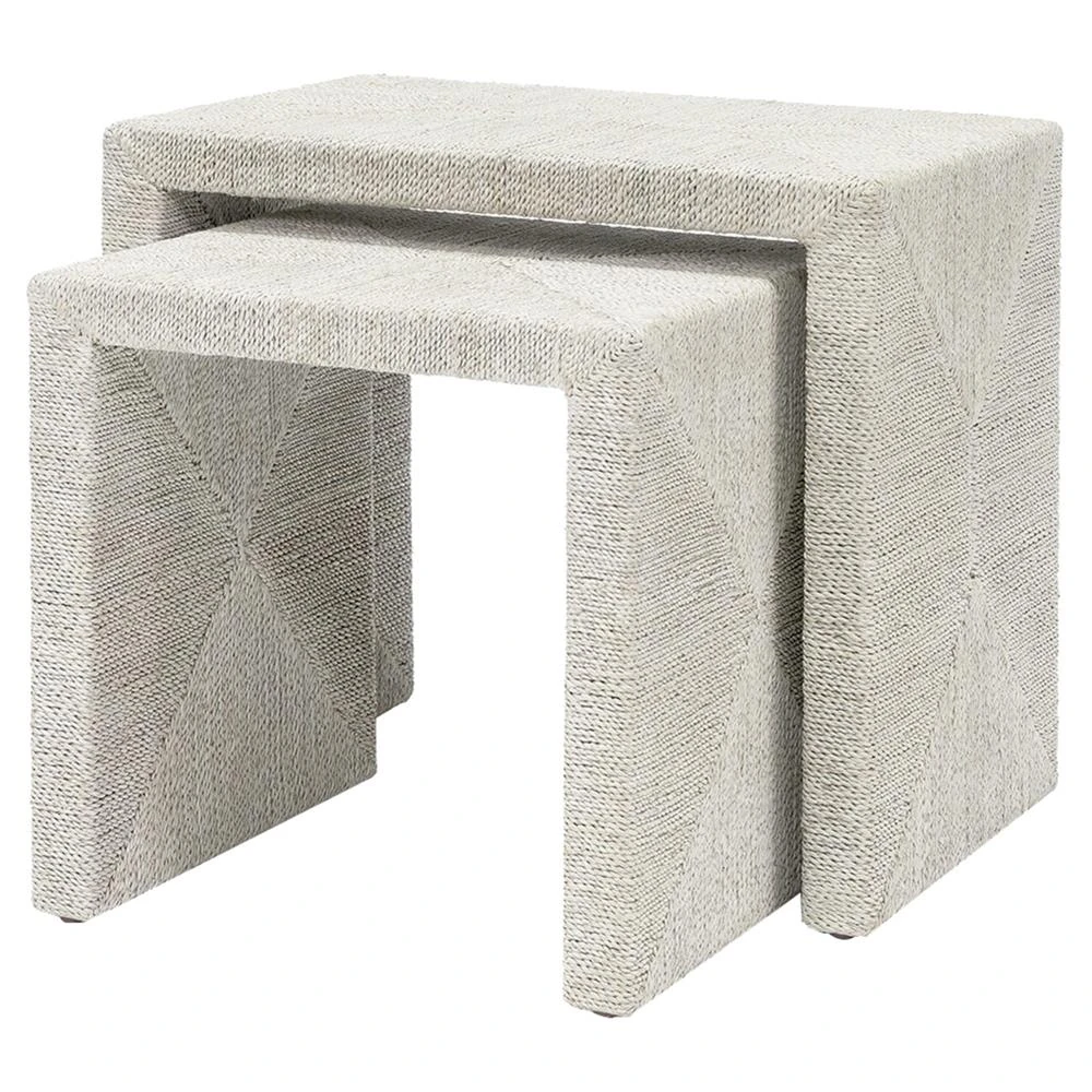 Palecek Woodside Coastal Beach White Rope Hardwood Nesting Tables - Set of 2