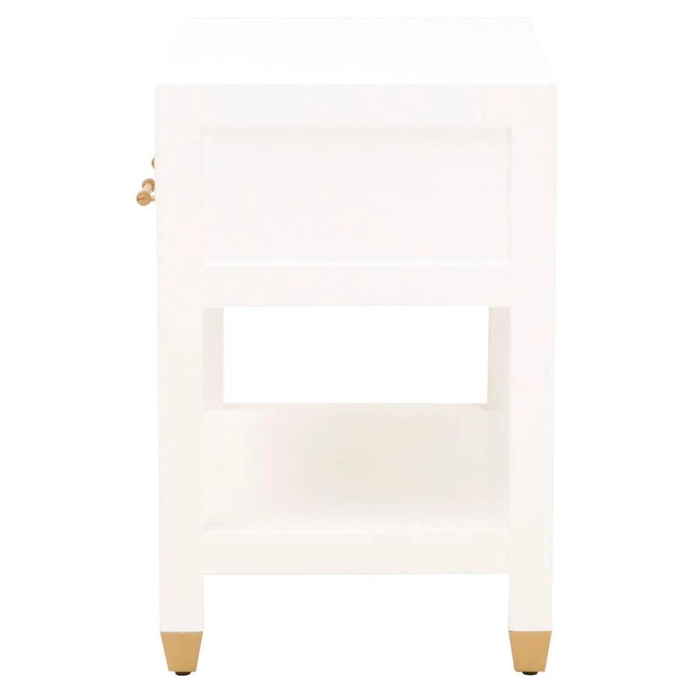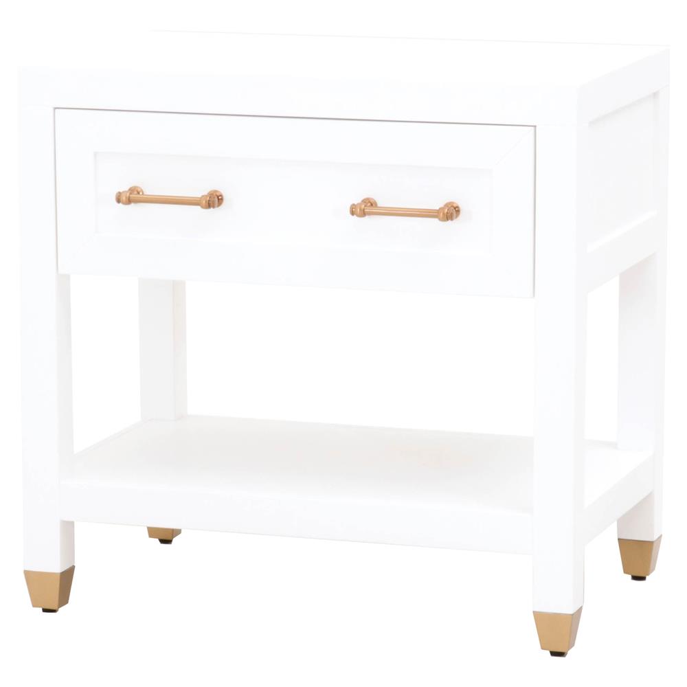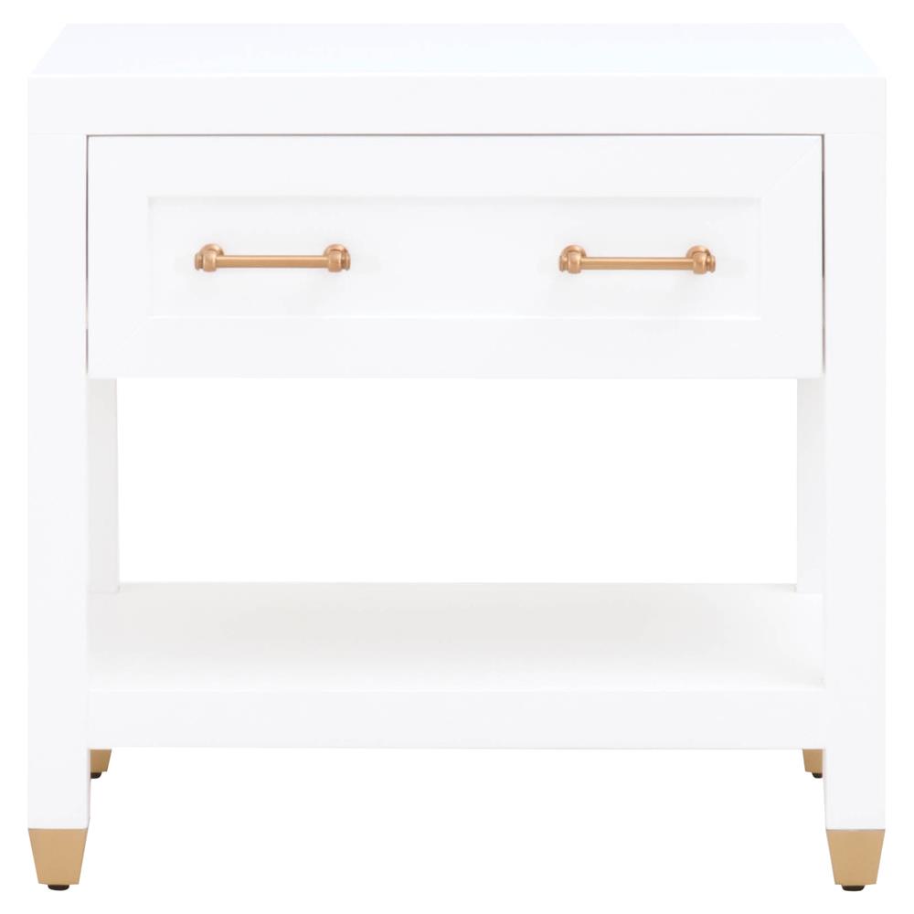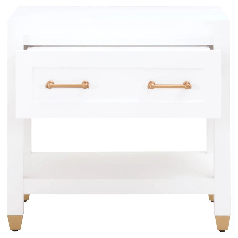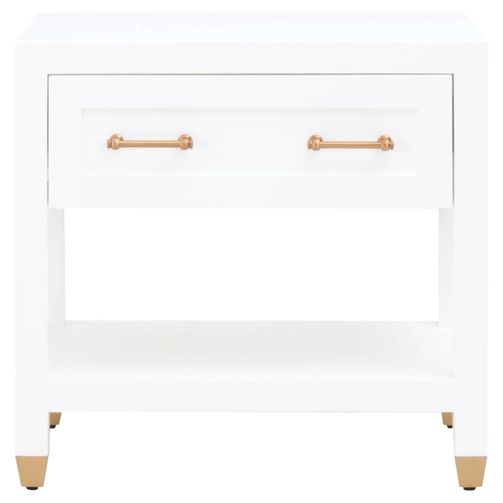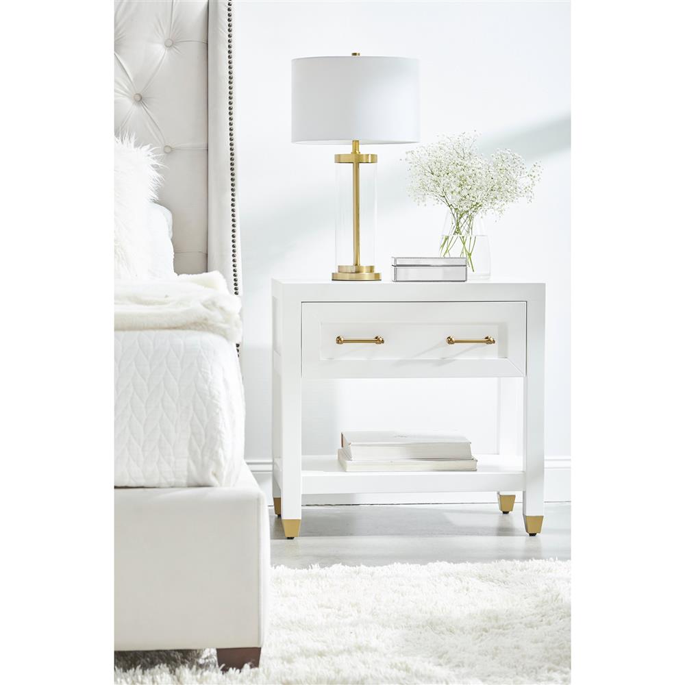 Stacy Modern Classic 1 Drawer Brass Accent White Nightstand