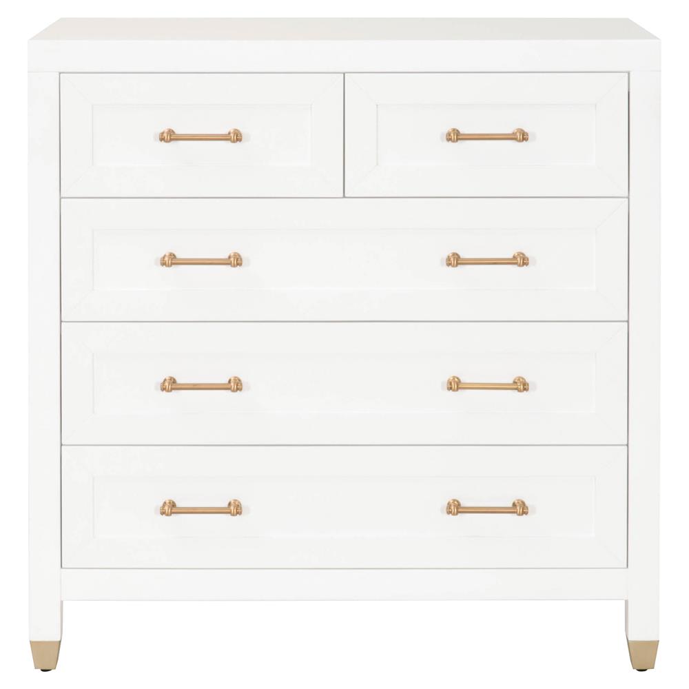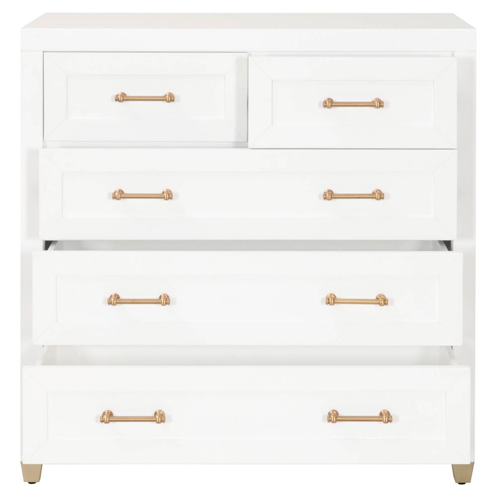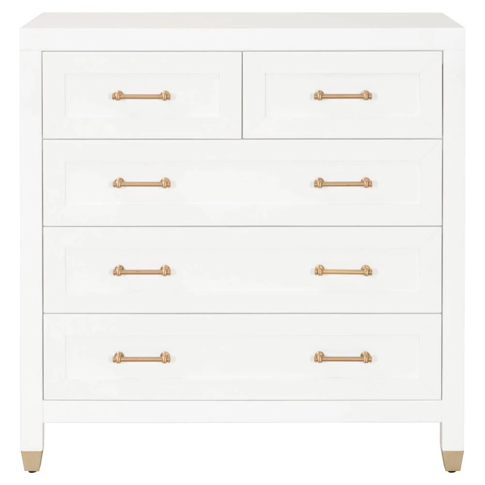 Stacy Modern Classic Matte White Wood Brass Steel 5 Drawer Dresser