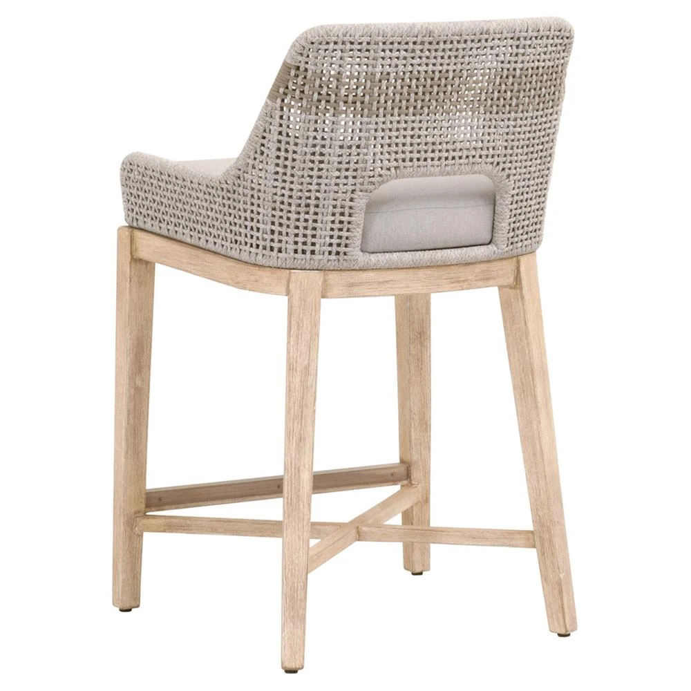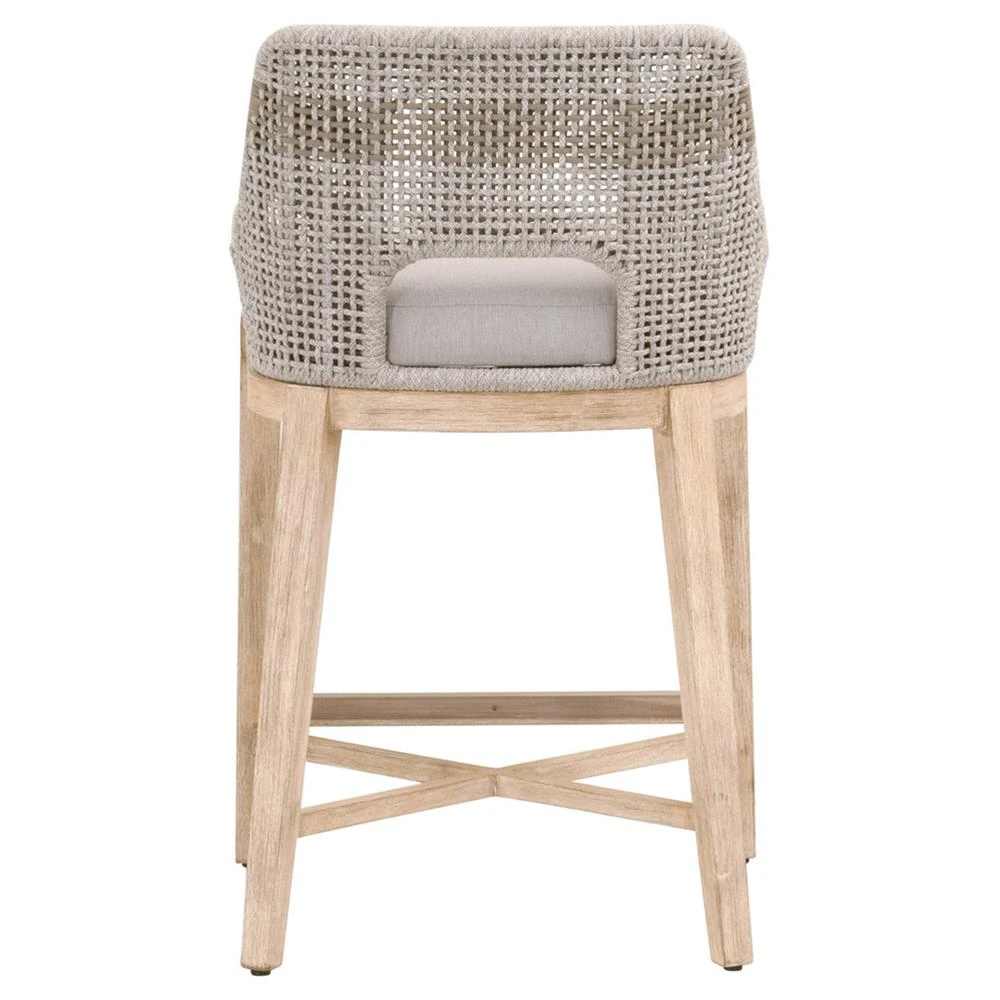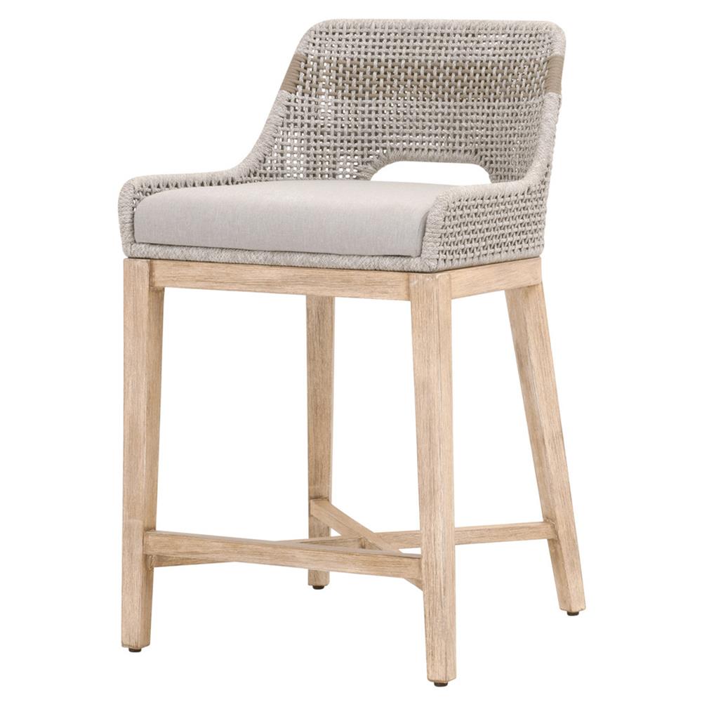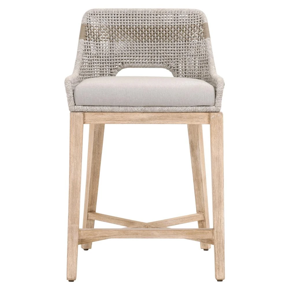 • Adelyn Coastal Brown Teak Handwoven Seagrass Back Grey Performance Counter Stool|Kathy Kuo Home