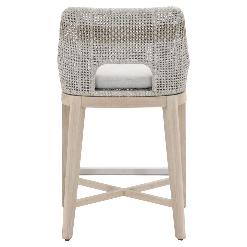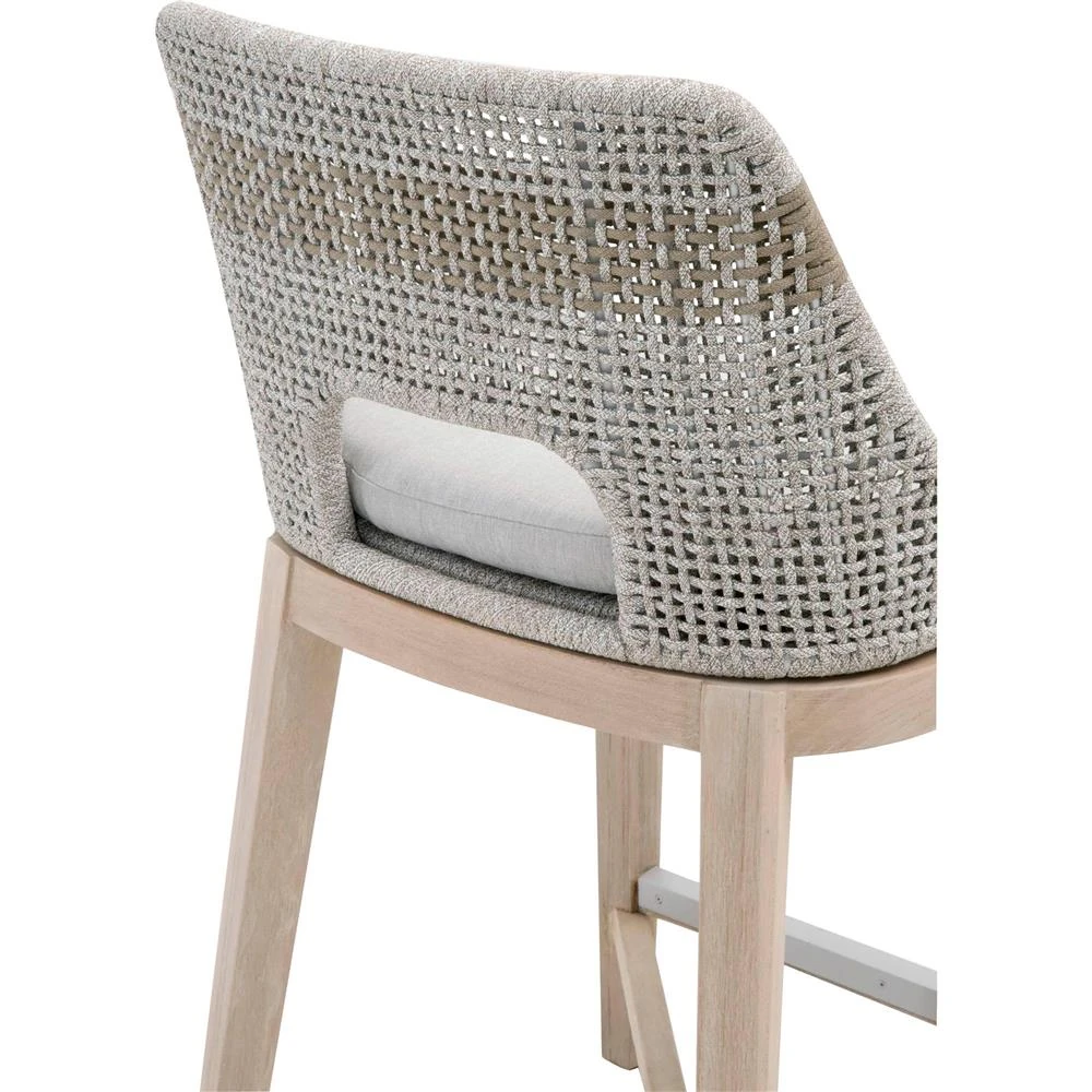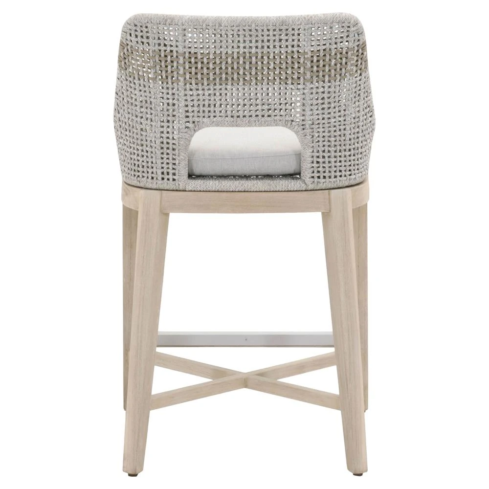 Kailey Coastal Taupe Woven Rope Grey Teak Outdoor Counter Stool