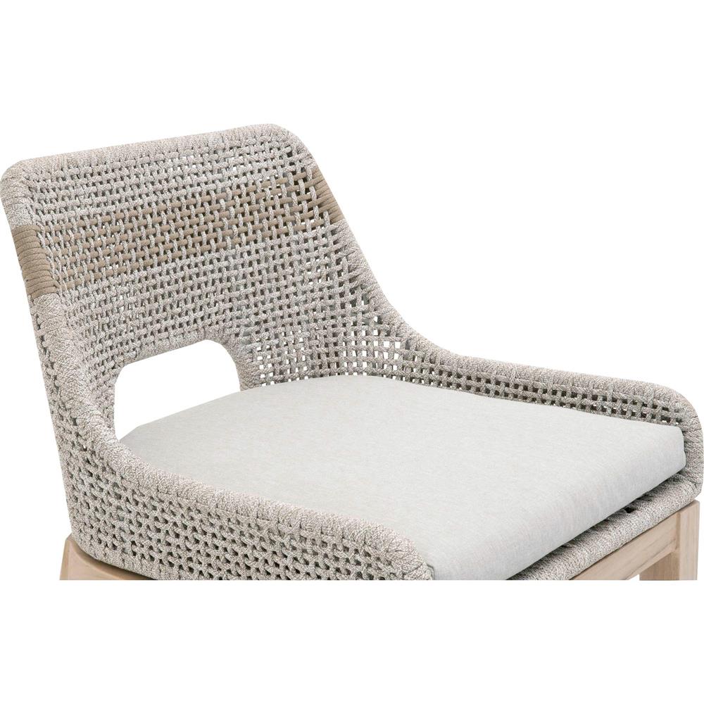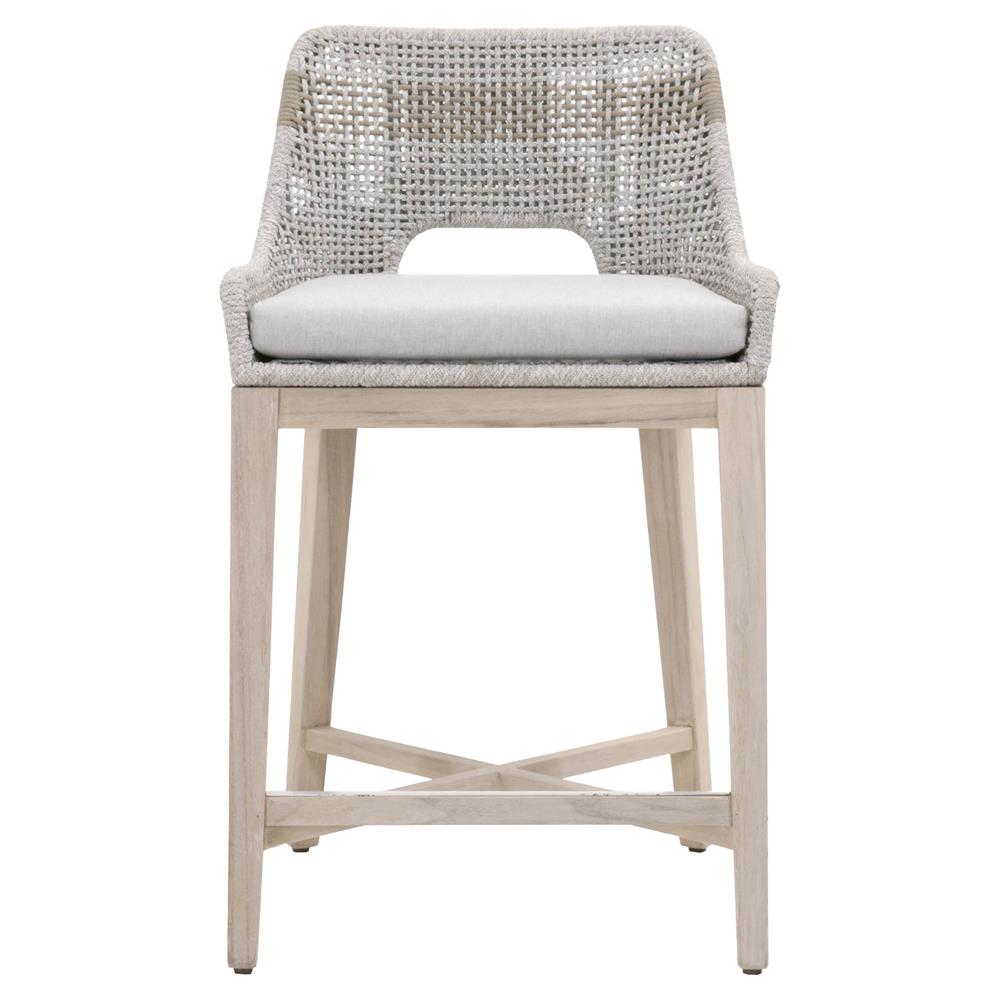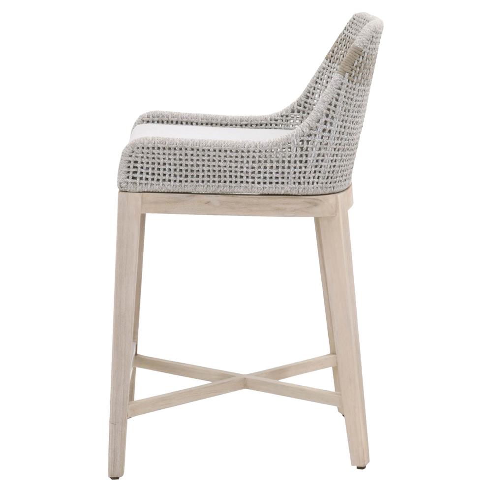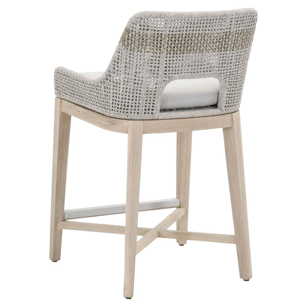 Kailey Coastal Taupe Woven Rope Grey Teak Outdoor Counter Stool