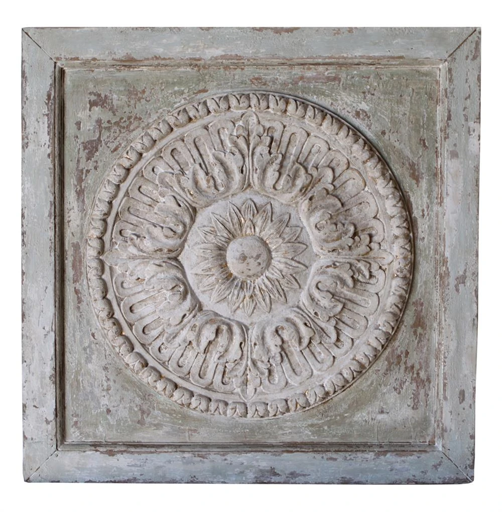 Our Soleo French Country Carved Sun Wood Panel keeps your spirits bright, even when the weatherG??s dreary outside. The distressed fini ... more