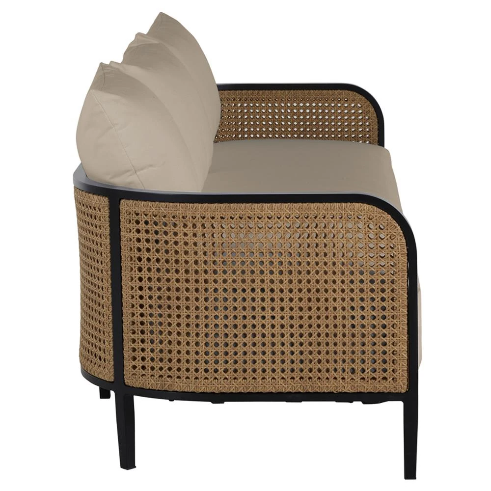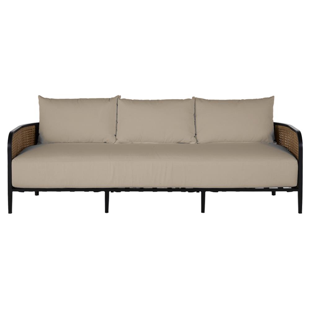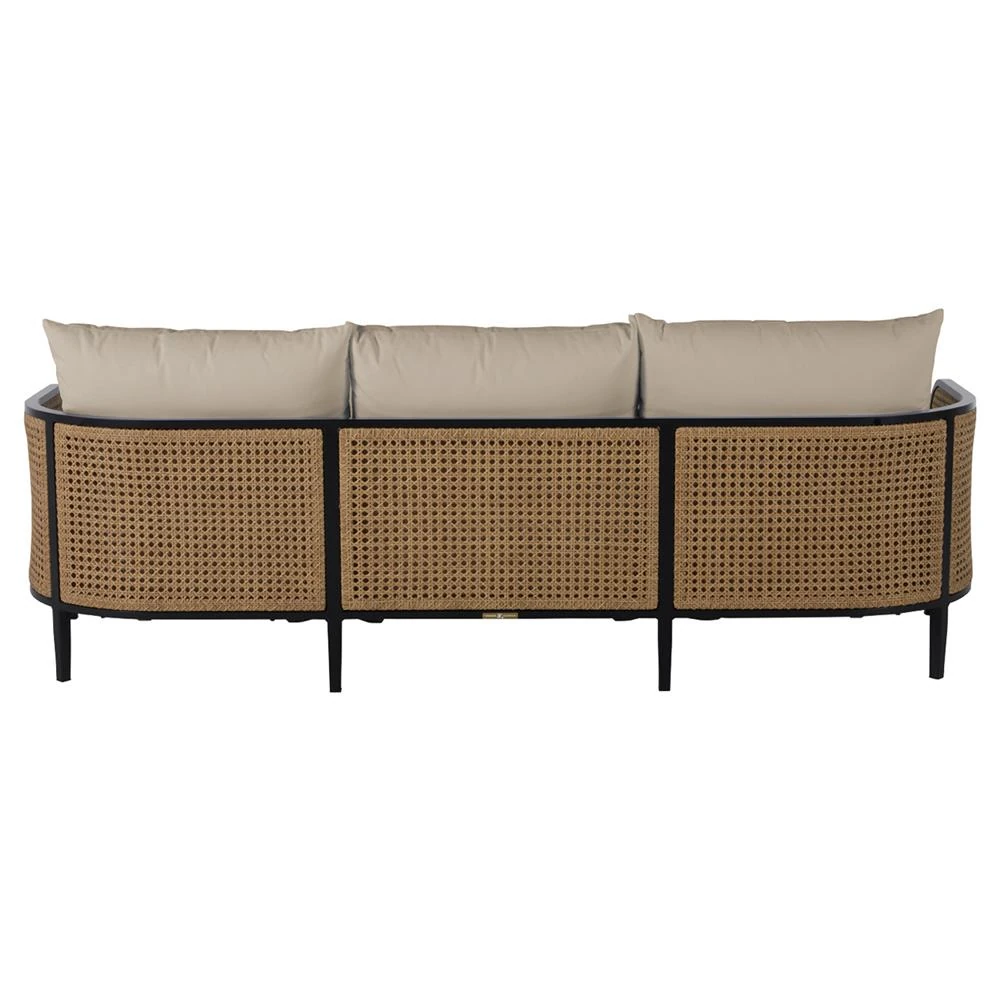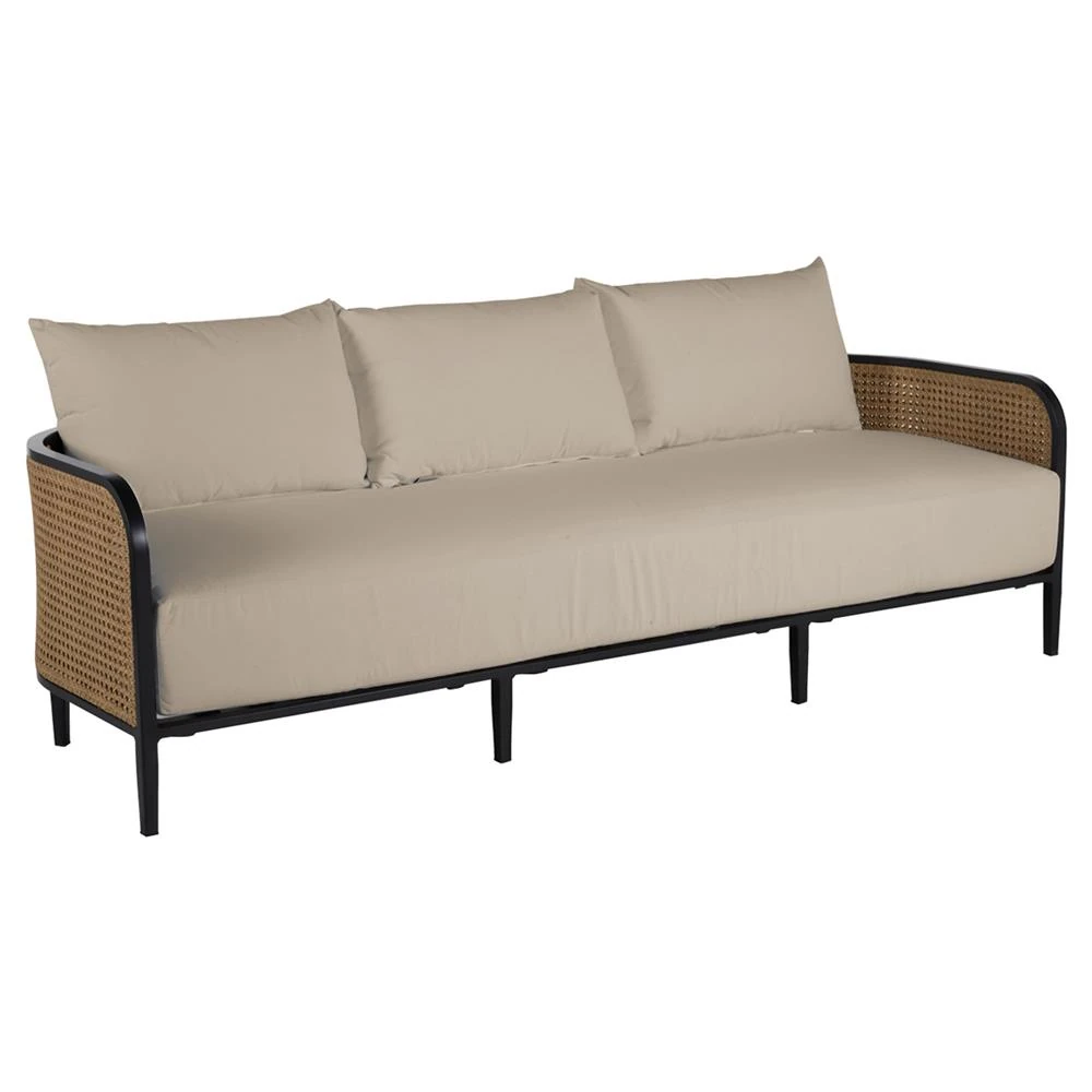 Havana Modern Beige Sunbrella Cushion Black Frame Cane Outdoor Sofa - 86"W