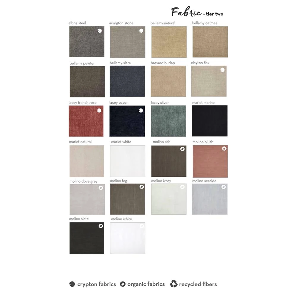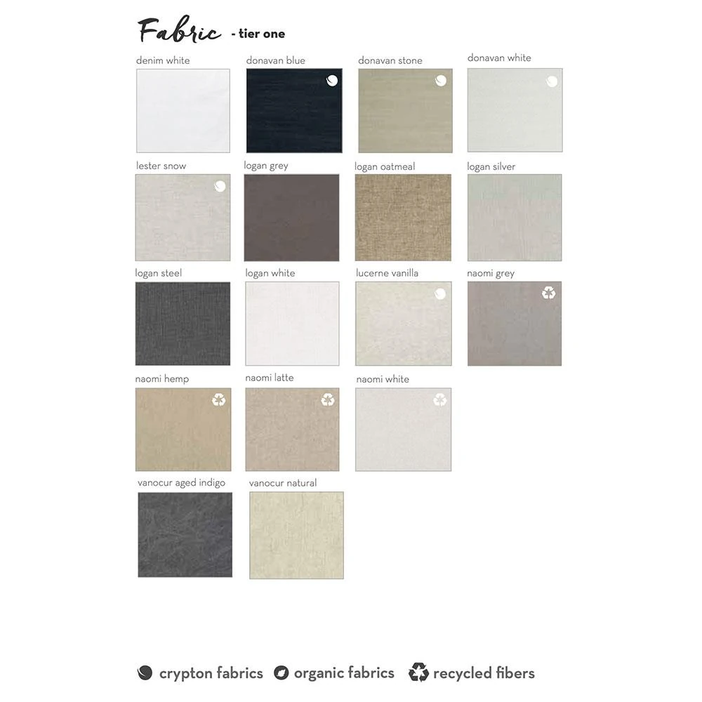 • Upholstered in "Logan Oatmeal" fabric. Fabric content: 100% linen. Fabric is not treated with ScotchguardG?