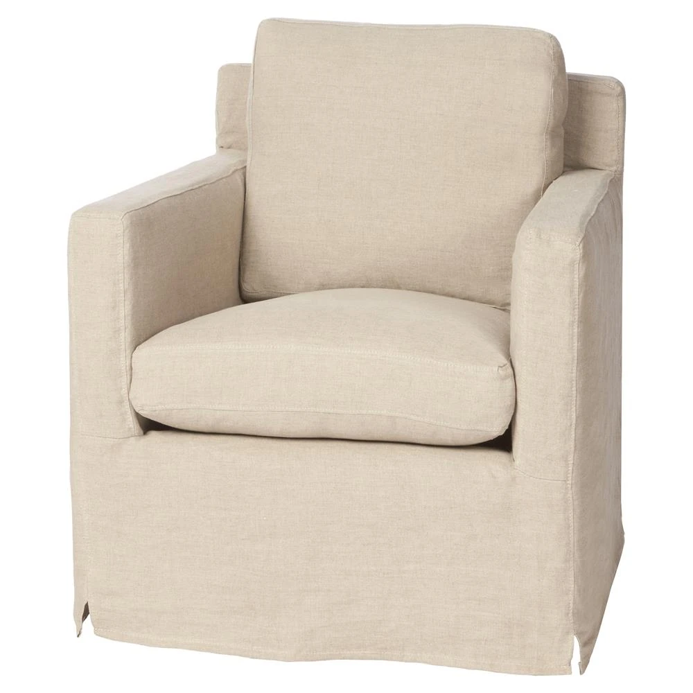 • Cisco Home Genevieve Modern Classic White Linen Slip Cover Low Back Arm Chair|Kathy Kuo Home
