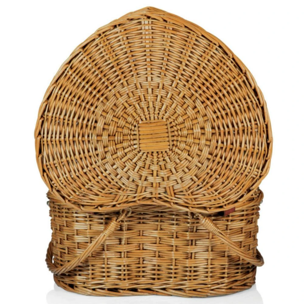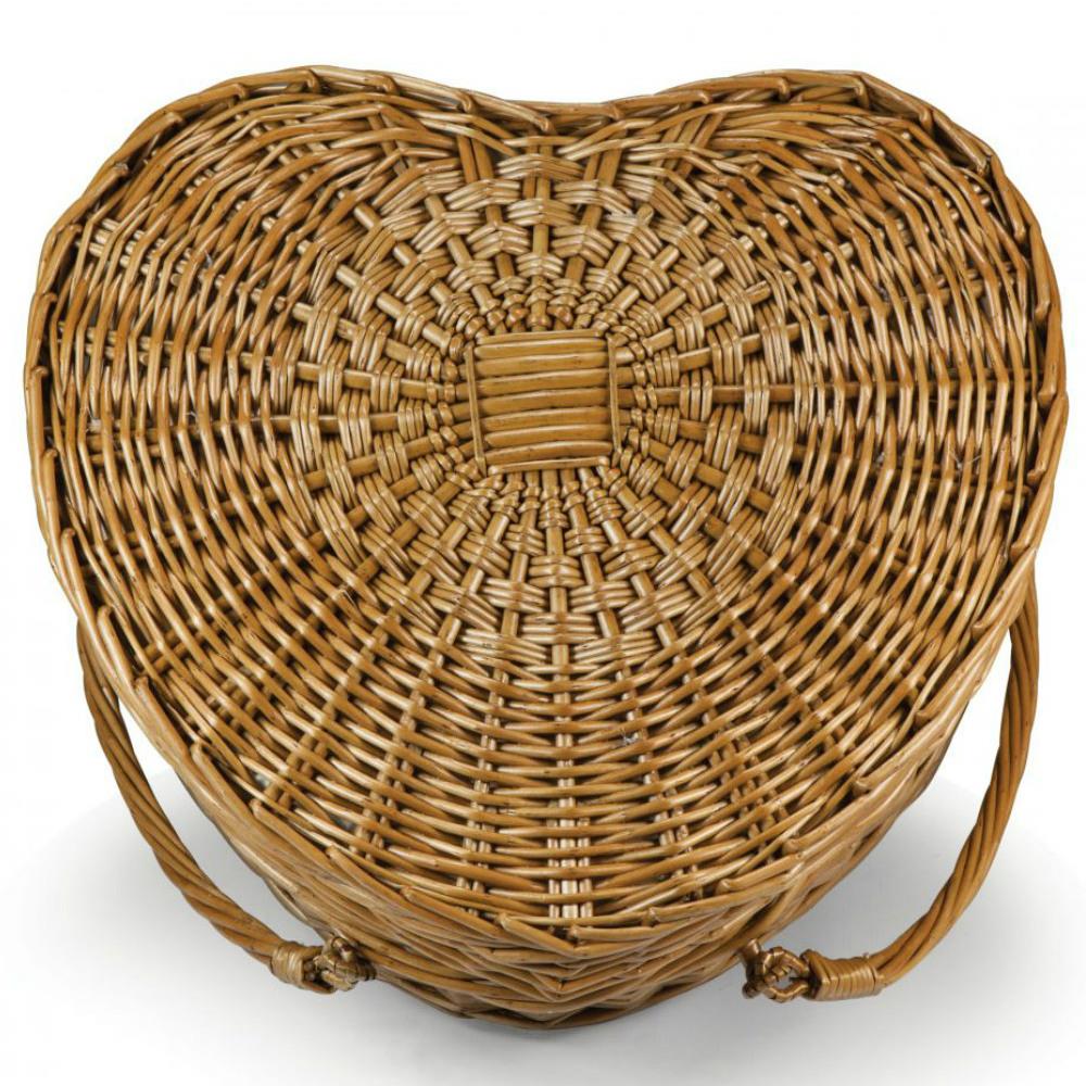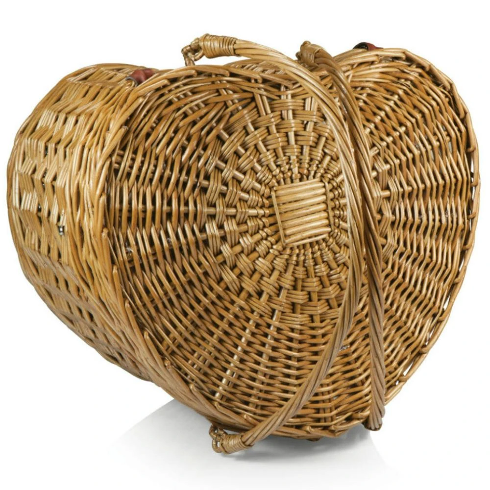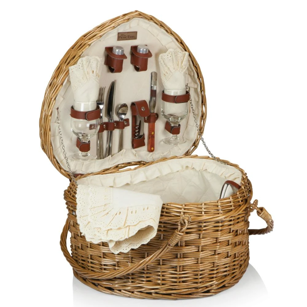 Lauren Modern Classic Brown Willow Cream Heart Picnic Basket with Serveware for 2
