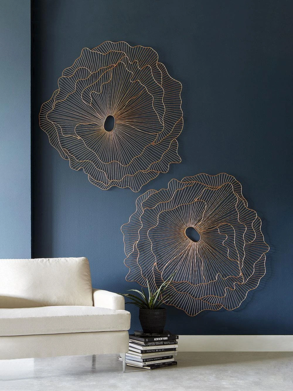 • Cadmus Modern Silver Reclaimed Metal Wire Flower Wall Sculpture|Kathy Kuo Home