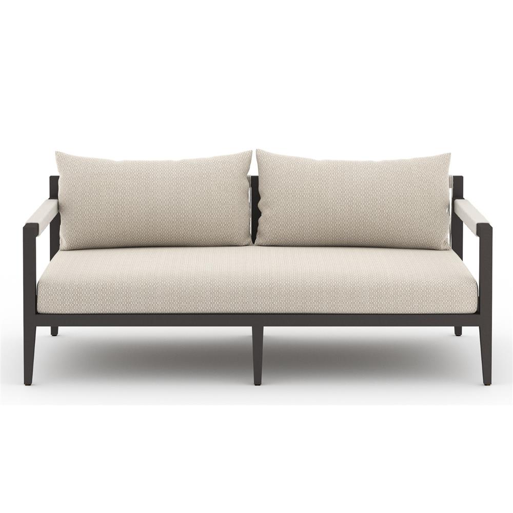 • Sturdy aluminum forms a clean frame for UV-resistant, water-repellent Sunproof fabric on this outdoor sofa