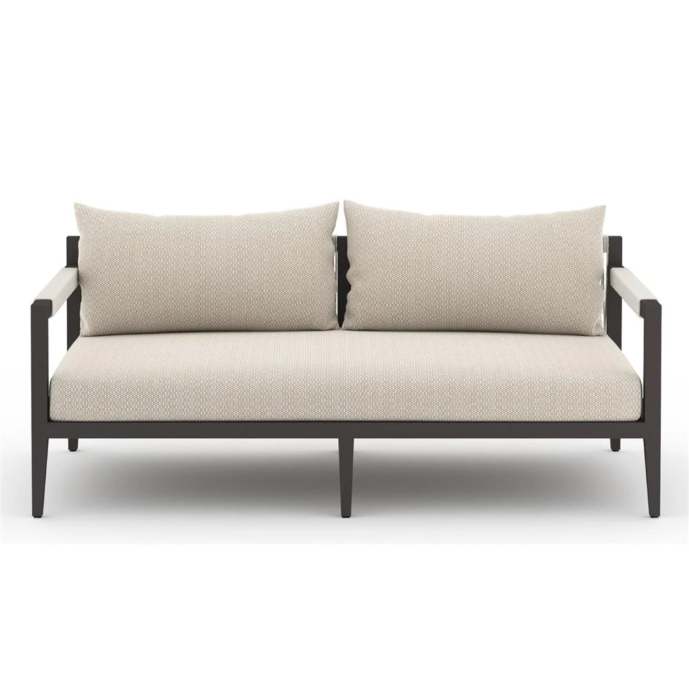 Cheryl Rustic Lodge Beige Upholstered Black Aluminum Outdoor Sofa - Small - 63"W