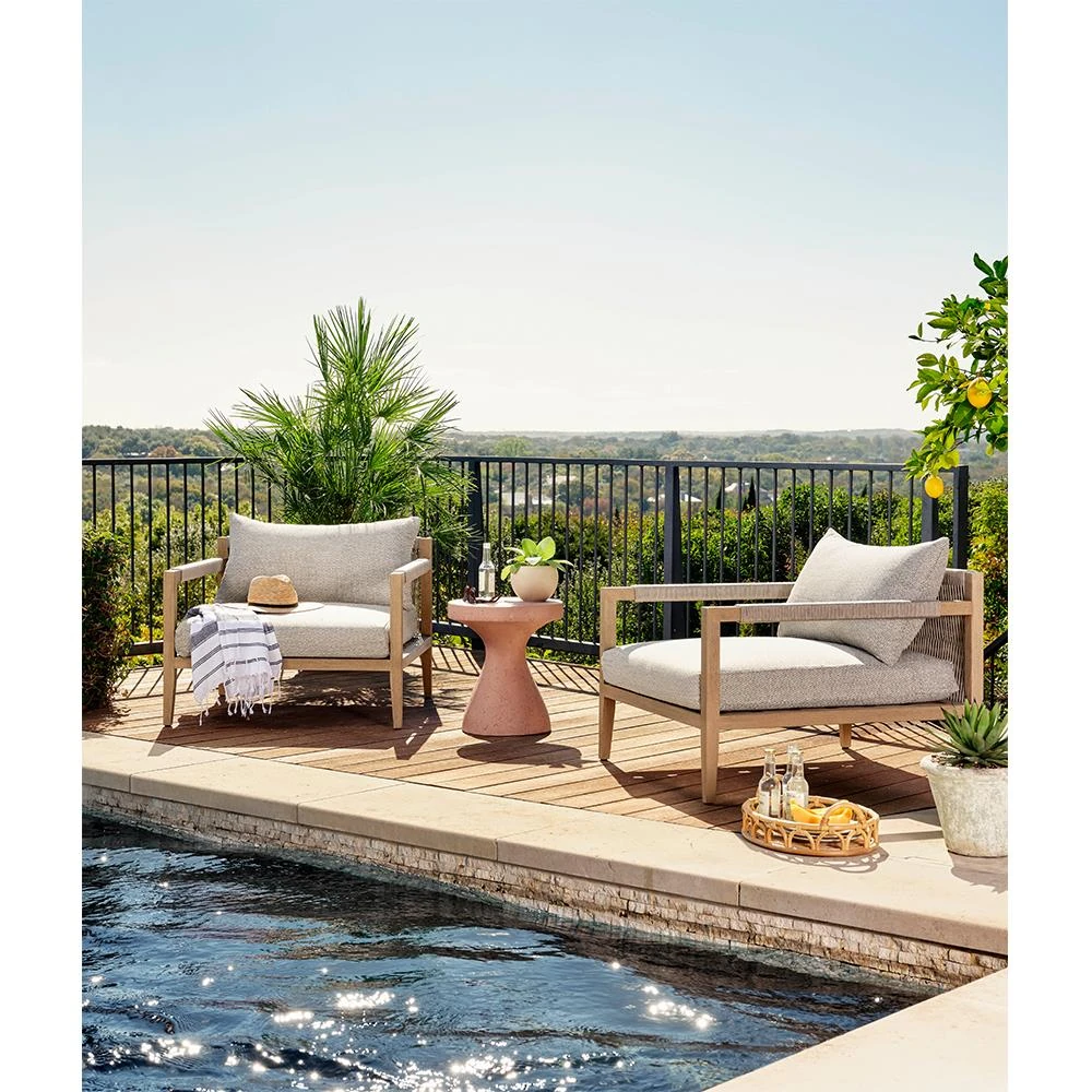 • Quinn Coastal Beach Natural Teak Outdoor Lounge Arm Chair|Kathy Kuo Home