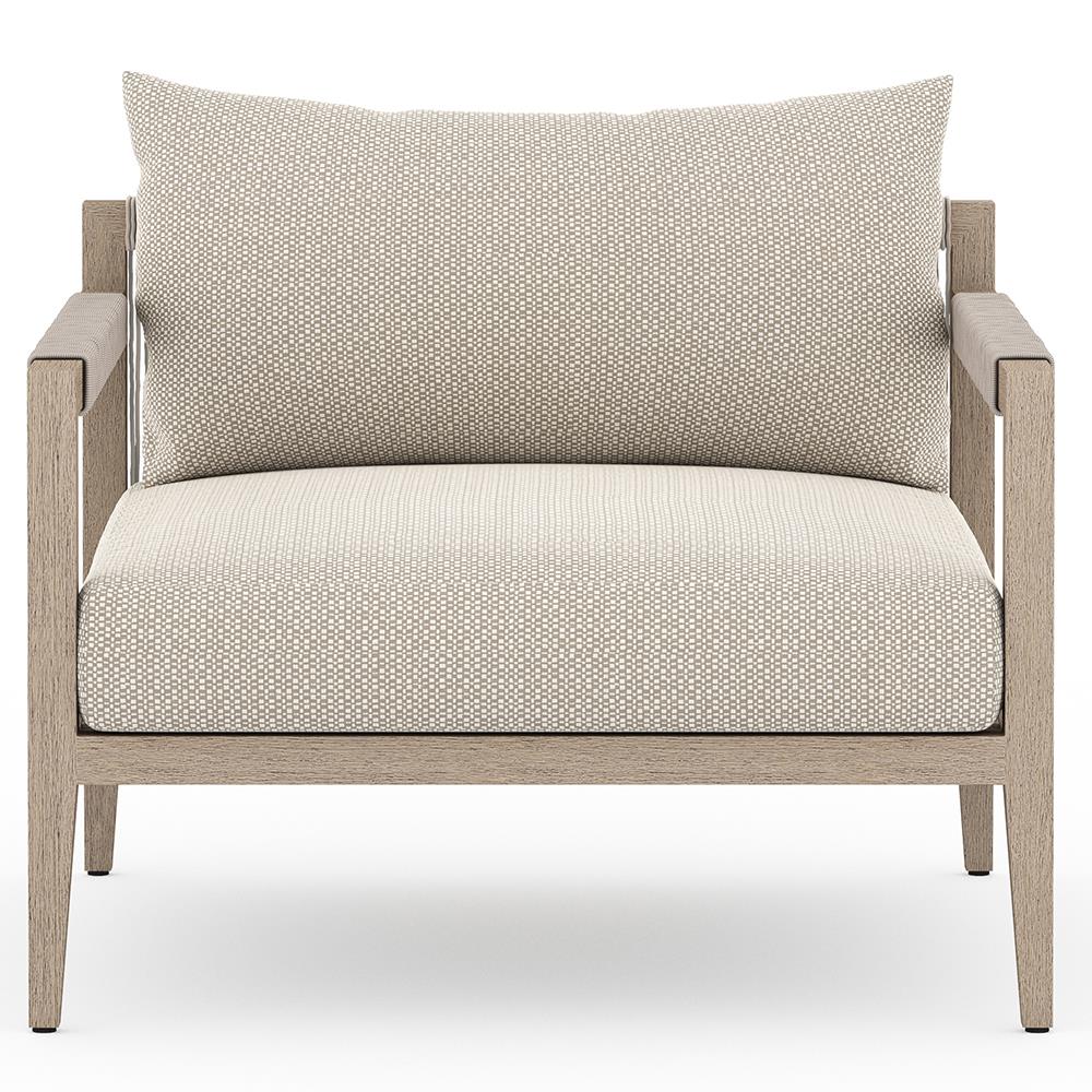 • Upholstered in faye sand performance fabric; Fabric content: 100% Olefin for UV-resistant and water-repellent Sunproof fabric