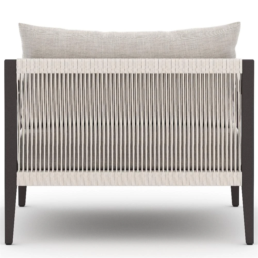 • Cheryl Modern White Cushion Woven Rope Natural Teak Outdoor Dining Arm Chair|Kathy Kuo Home
