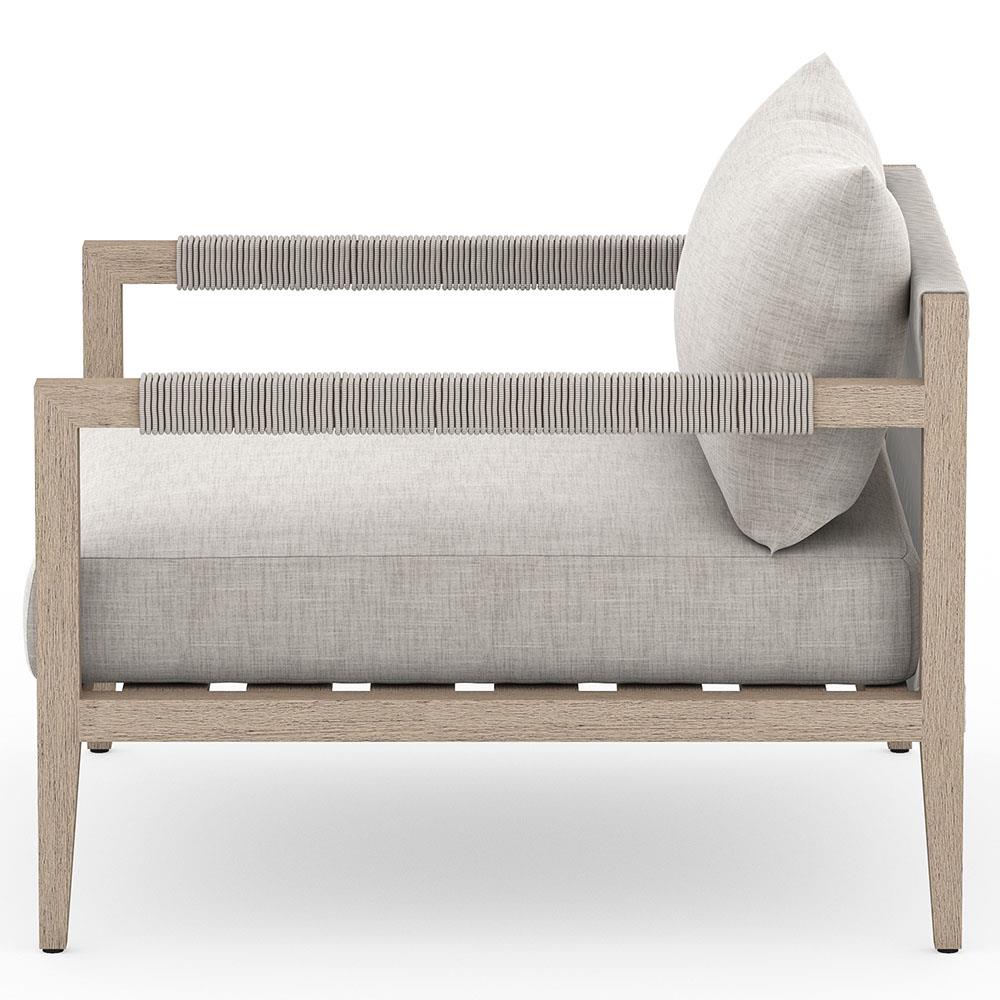 • Cheryl Modern Light Grey Cushion Woven Rope Natural Teak Outdoor Dining Arm Chair|Kathy Kuo Home