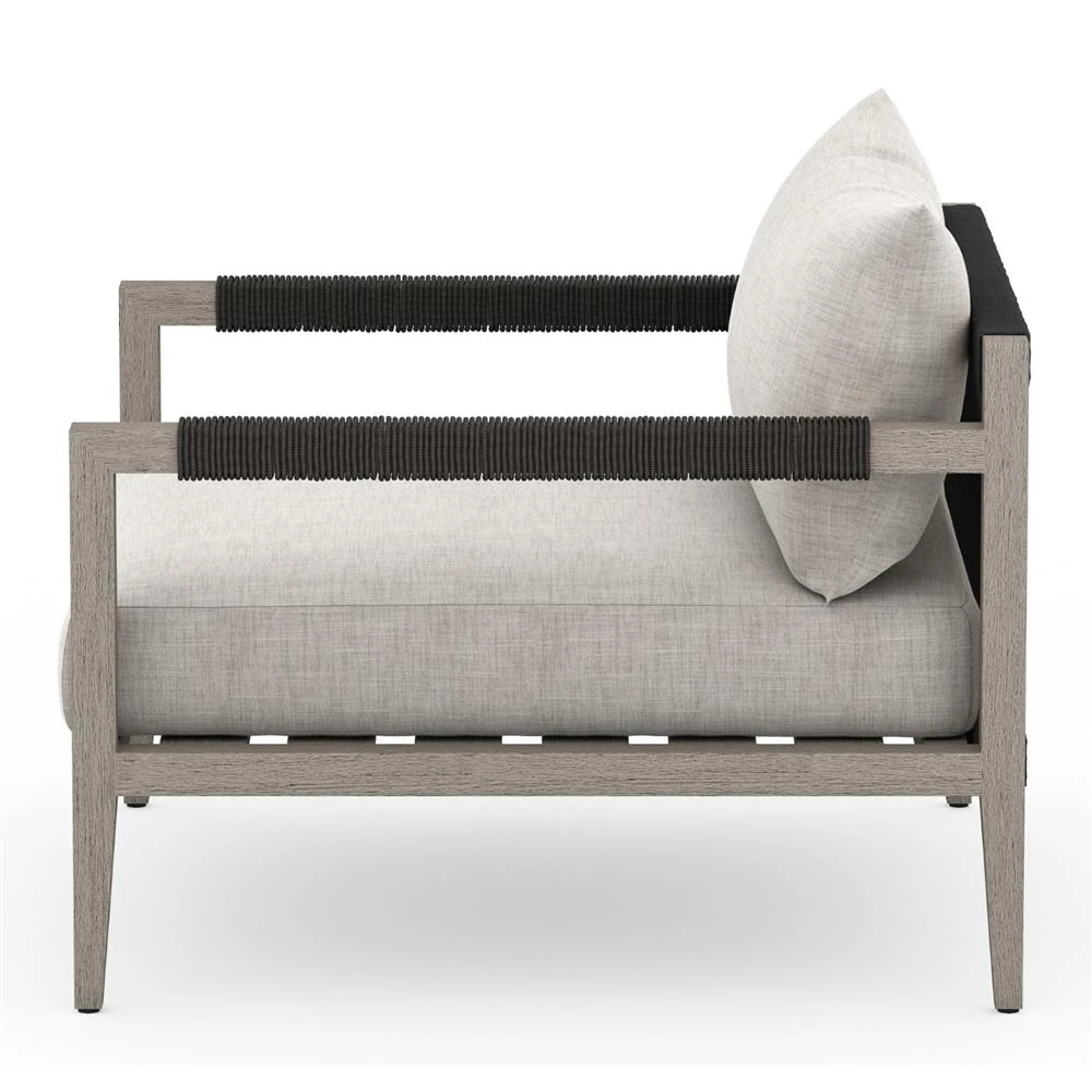 • Cheryl Modern Light Grey Cushion Woven Rope Natural Teak Outdoor Dining Arm Chair|Kathy Kuo Home