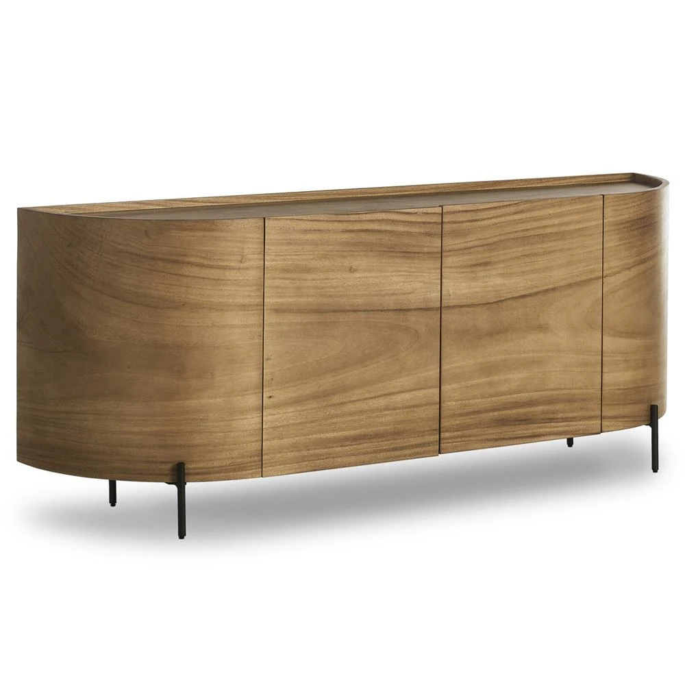 Emilie Coastal Beach 4 Door Natural Cane Mango Wood Metal Legs Sideboard
