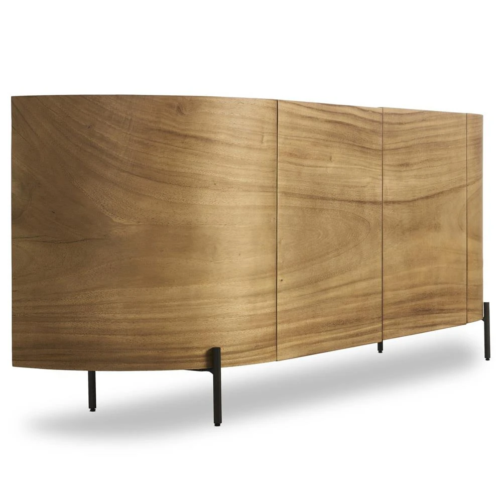Khalil Rustic Lodge Light Brown Wood Bronze Iron Curved Sideboard