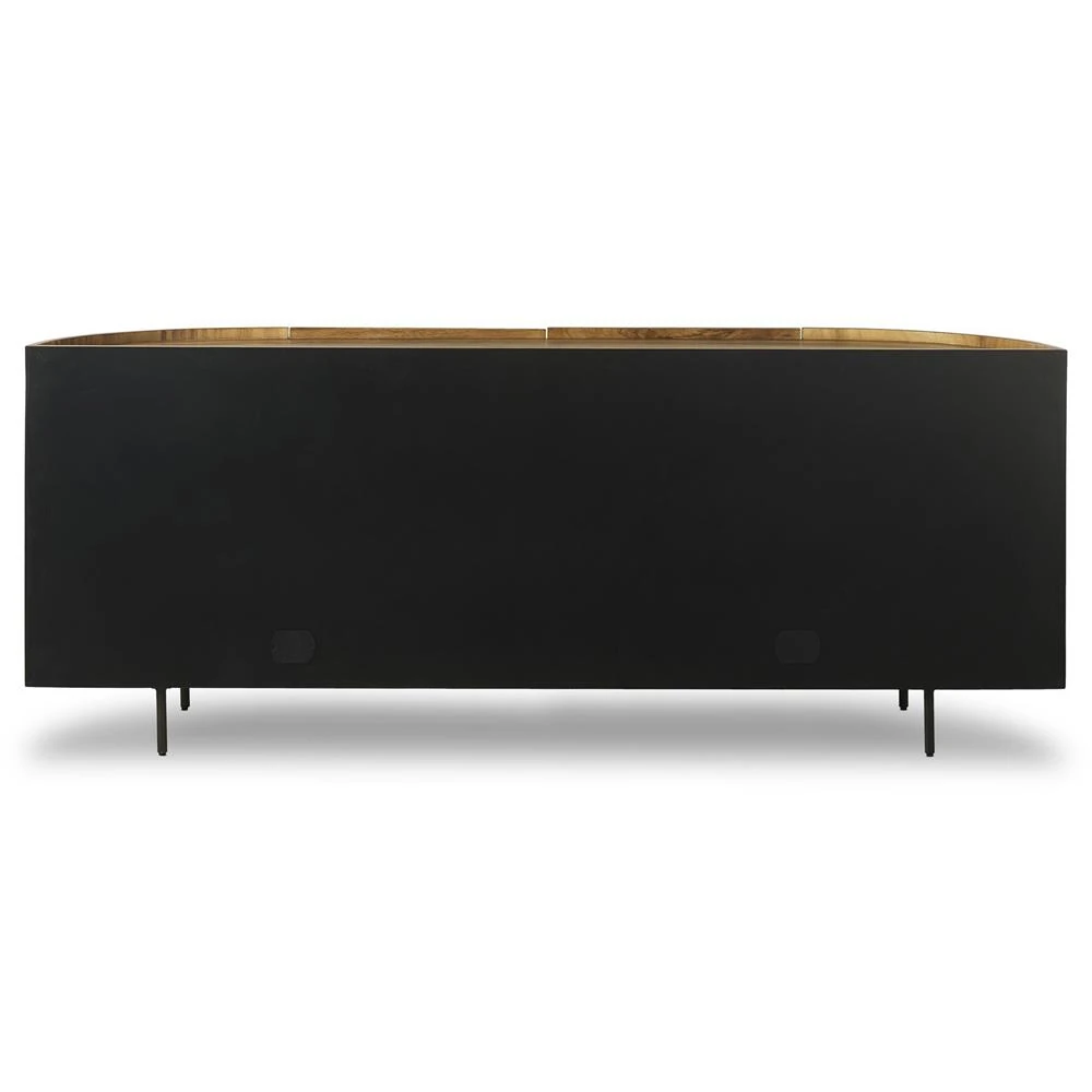 Kashton Mid Century Black Wash Mango Wood Arched Cane 4 Door Sideboard
