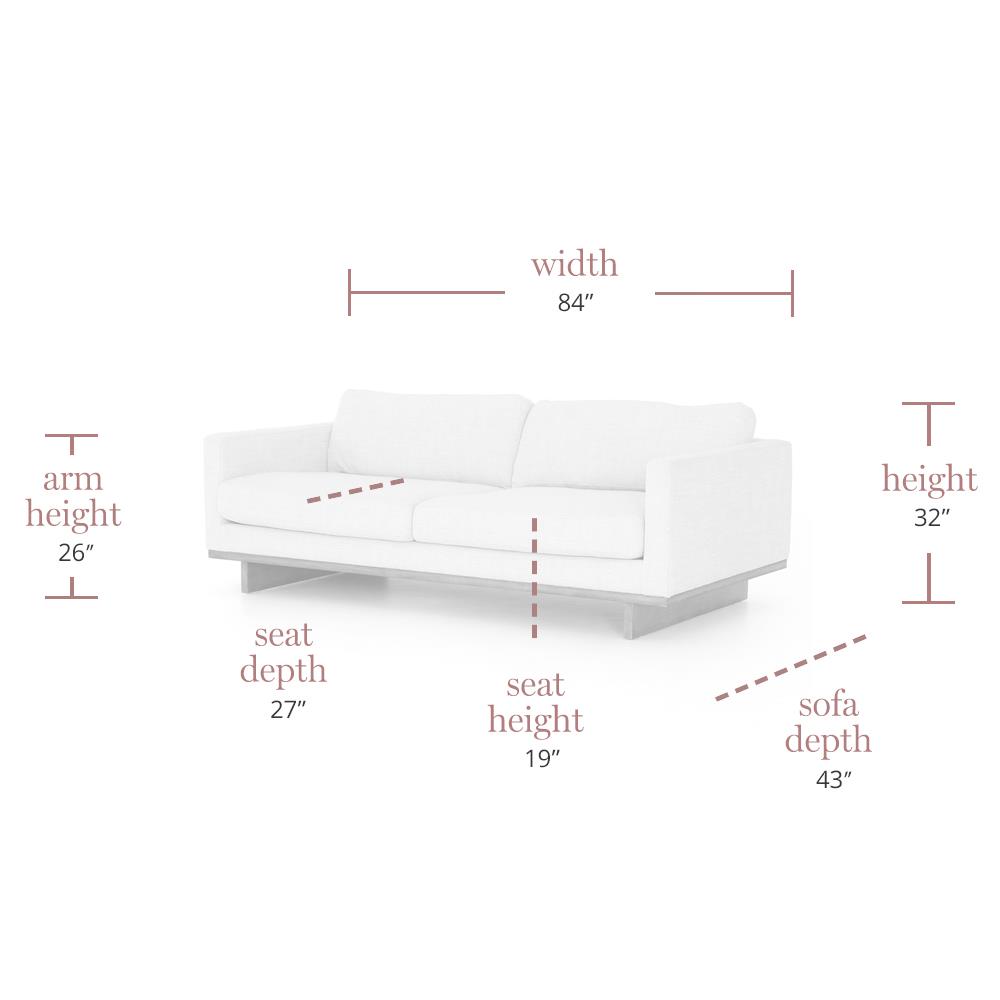 • Seat: 19 inches high x 76 inches wide x 27 inches deep; Arm: 7 inches high x 4 inches deep