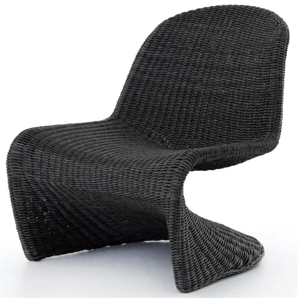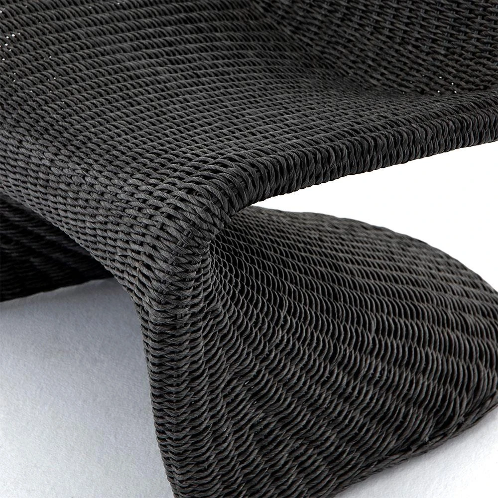 Ivanna Coastal Beach Black Woven Wicker Outdoor Lounge Chair