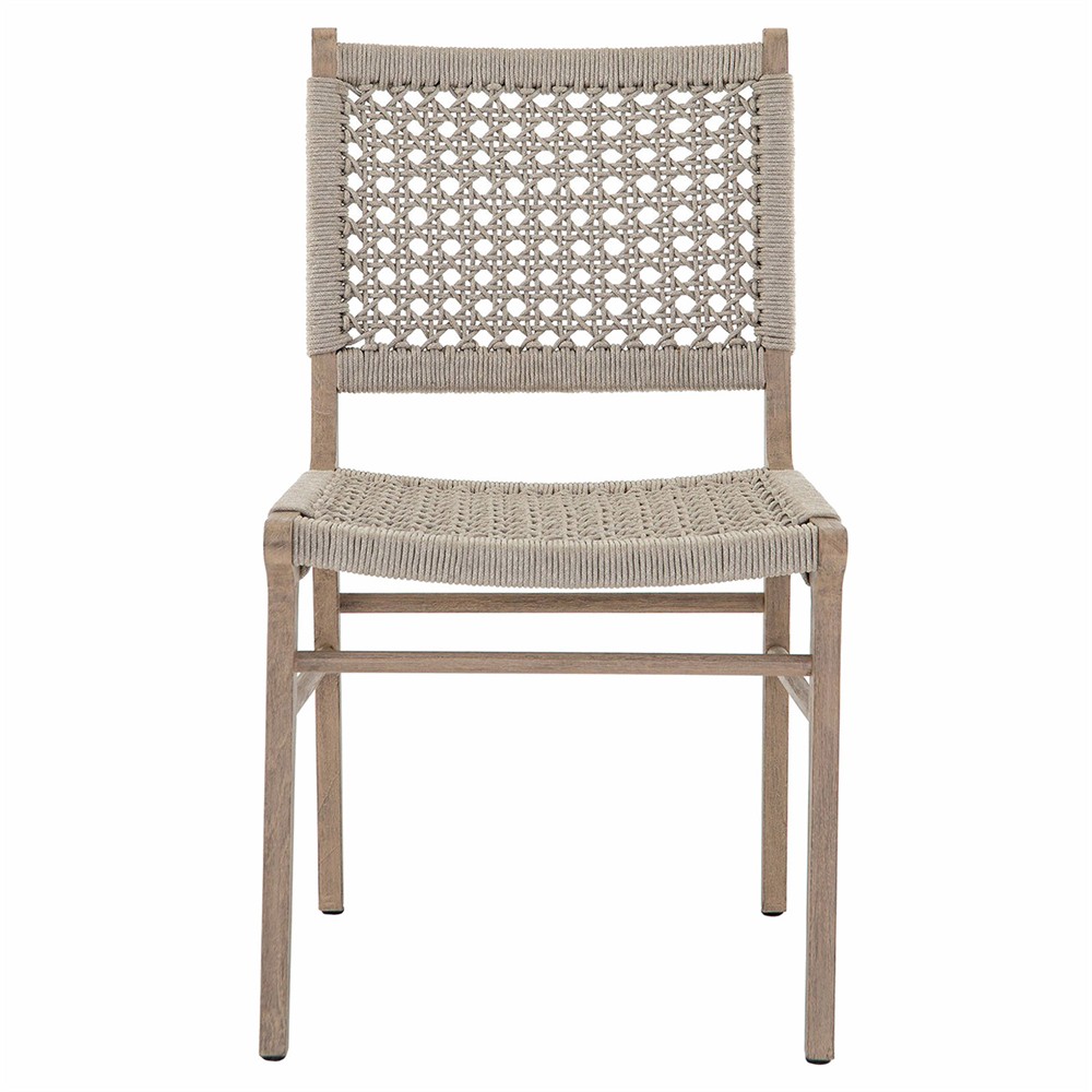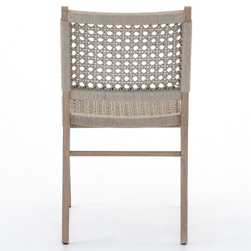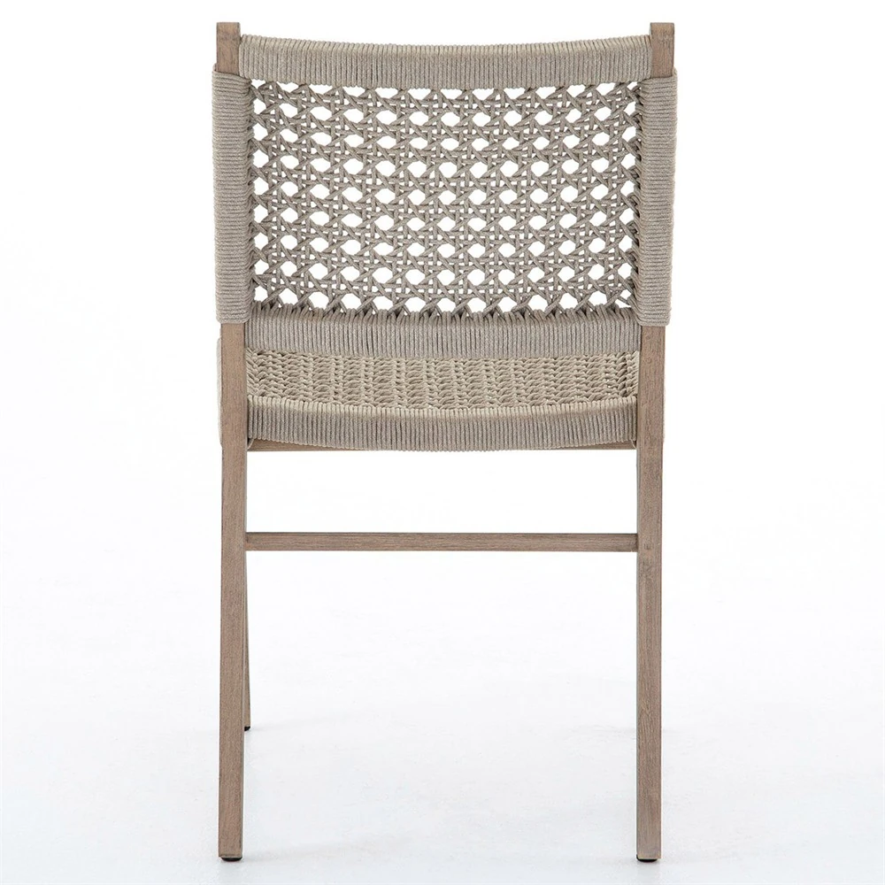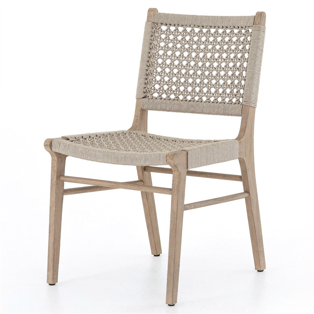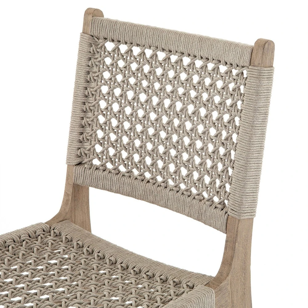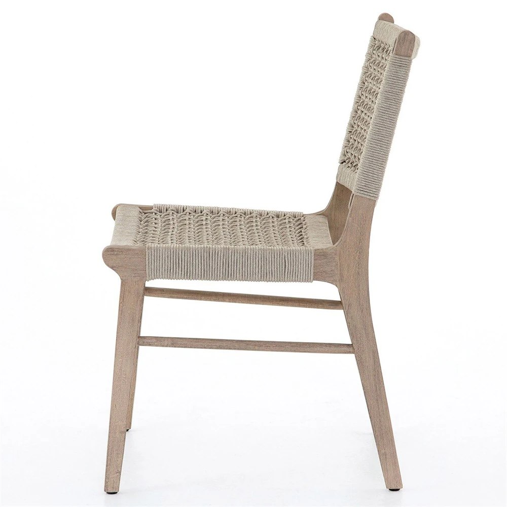Kailey Coastal Grey Teak Beige Woven Rope Outdoor Dining Side Chair - Set of 2