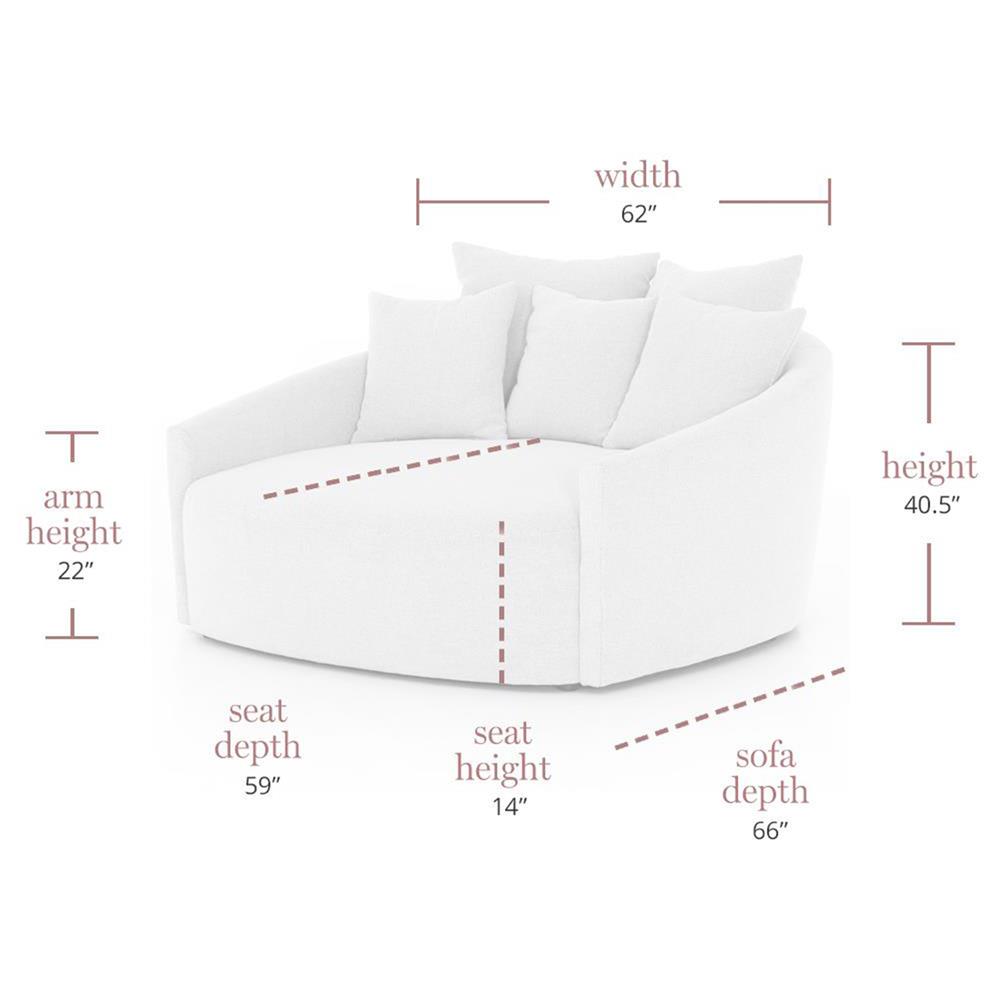 I was looking for a statement piece to provide additional seating in my home which is bi-level apartment in Philadelphia. This fit the bill! The Kathy Kuo team was super nice to work with, the delivery team was excellent, and I lucked out to snag this during the Labor Day sale. It is a beautifully constructed piece, spacious, and lovely to snuggle into. I am thrilled with this purchase and will enjoy it for years to come.