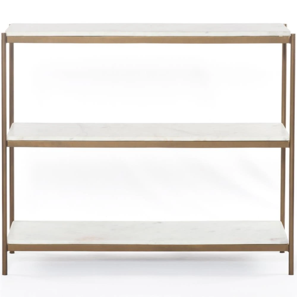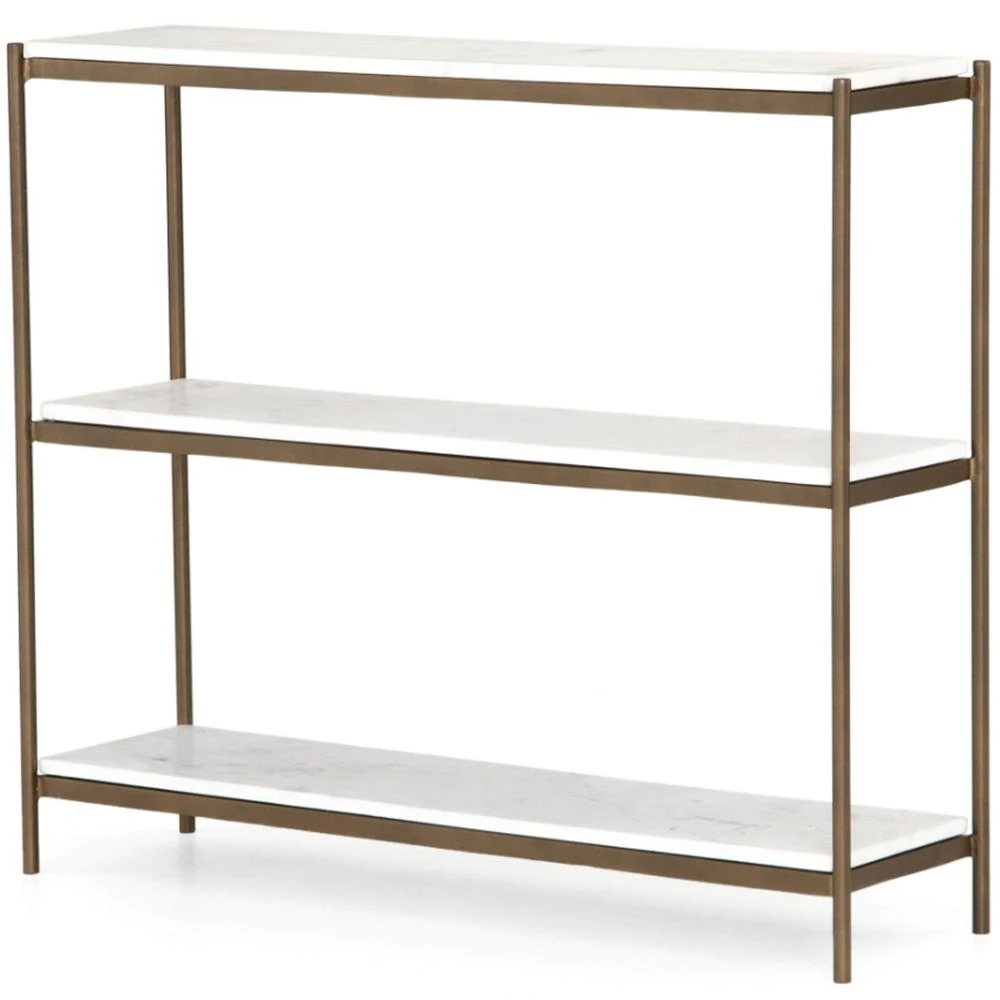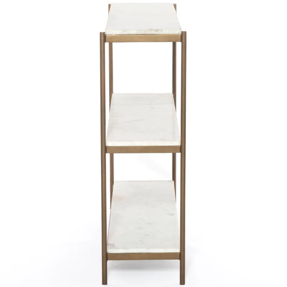 Kian Modern Classic White Marble Top Antique Gold Metal Console Table