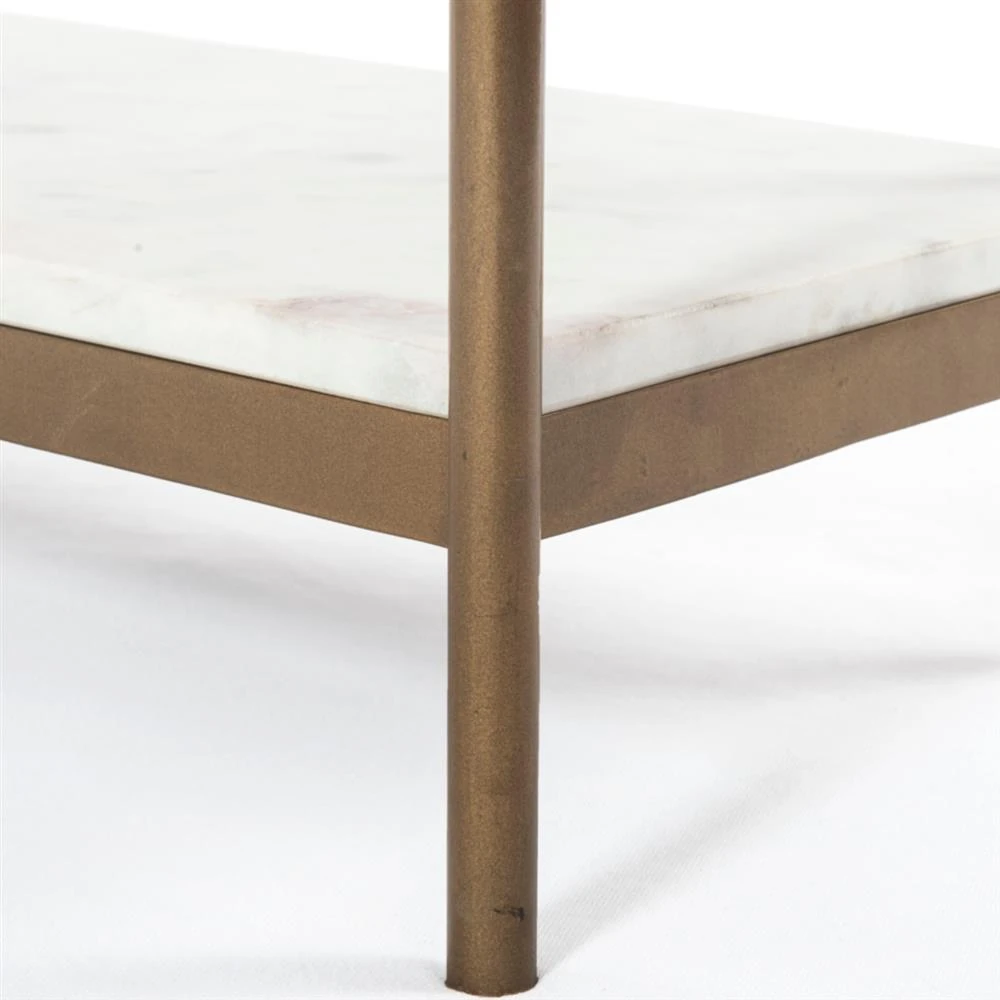 • Kian Mid Century White Marble Antique Brass Iron Oval Shelving Side Table|Kathy Kuo Home
