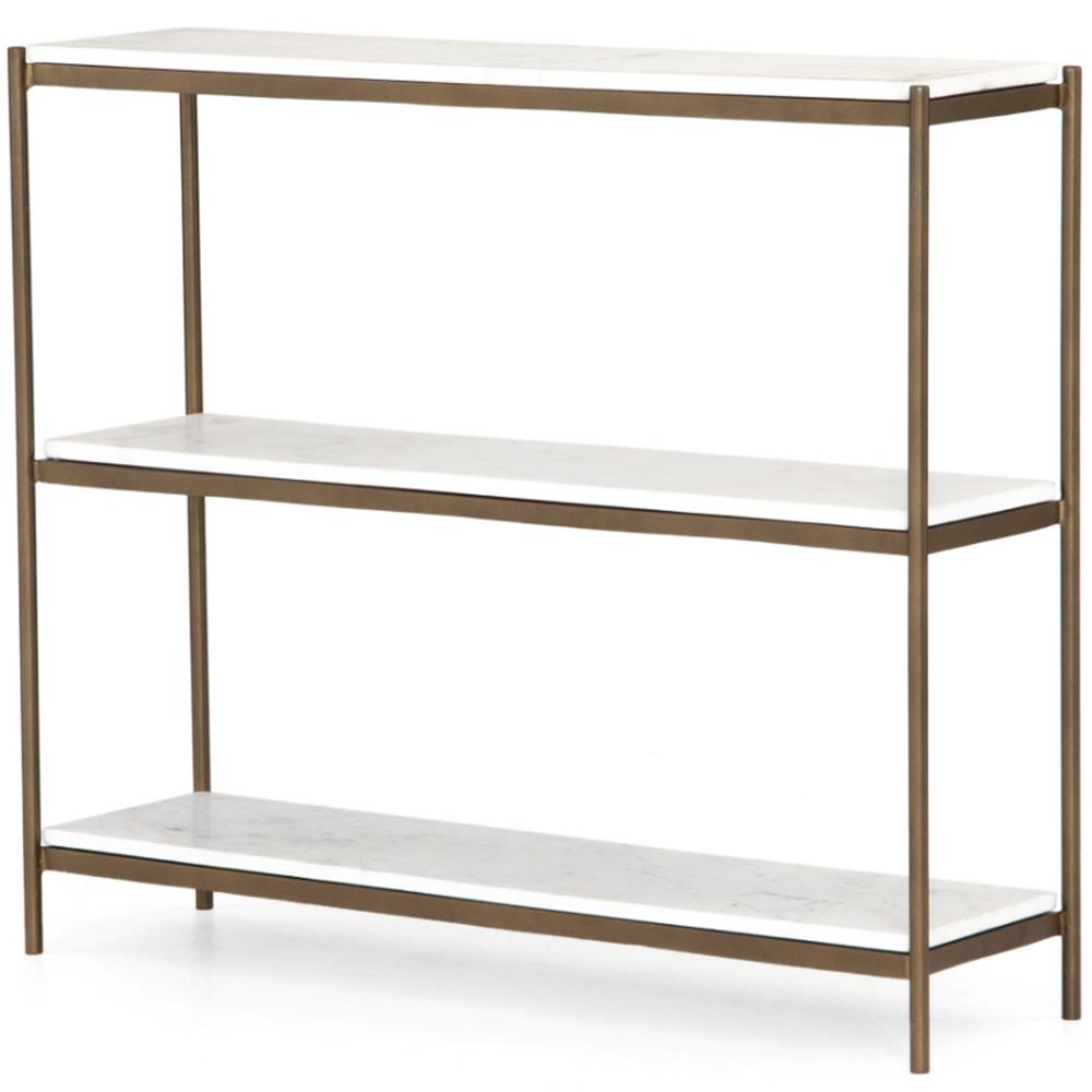 Arlene Updated Traditional White Travertine Bronze Iron Rectangular Console Table