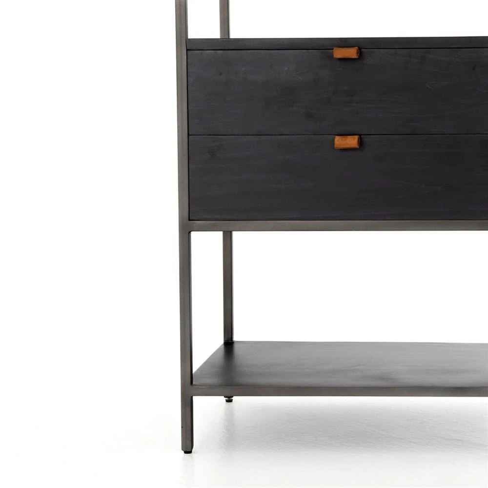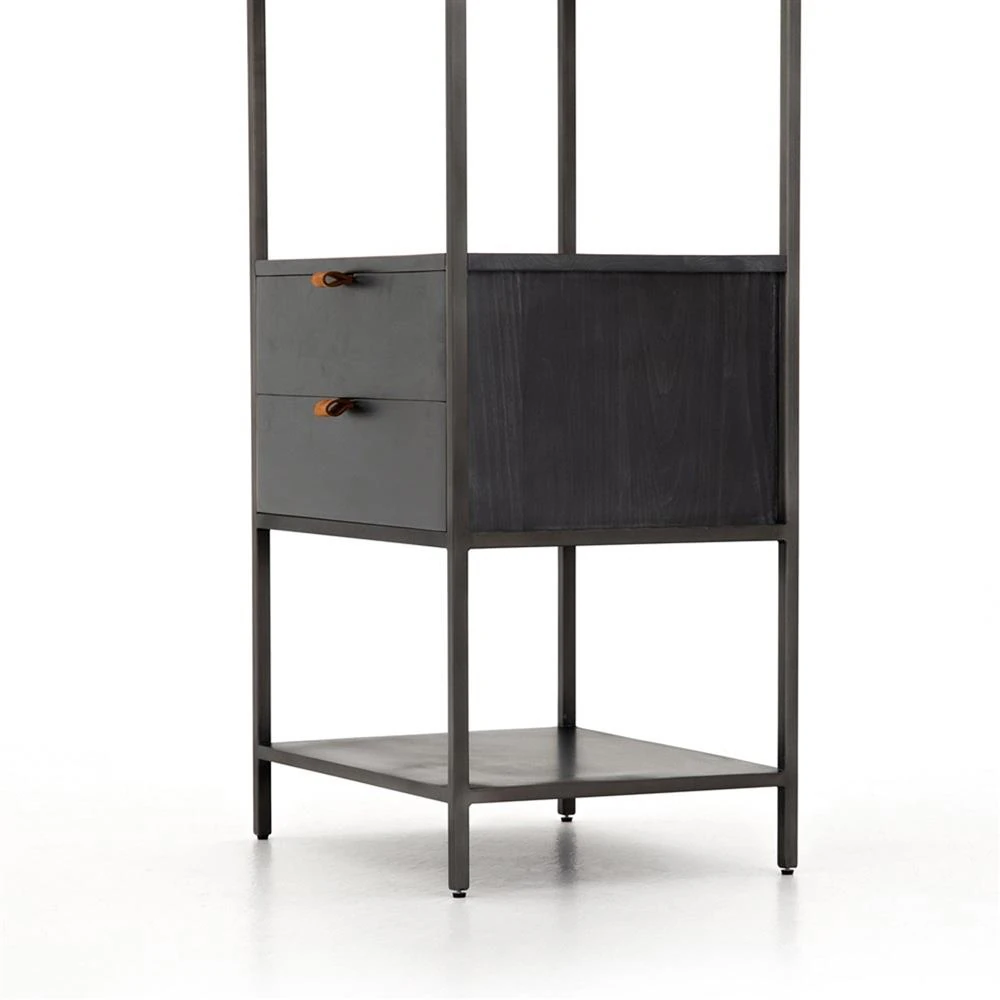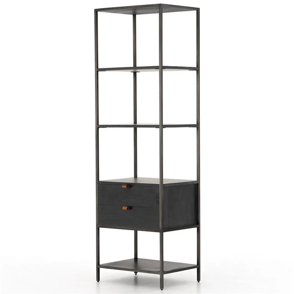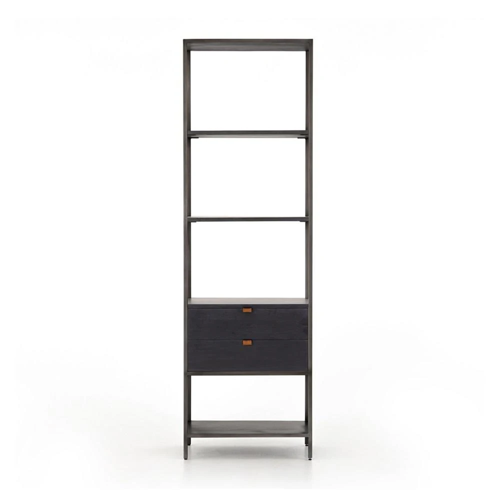 Theodore Industrial Loft Black Wood Grey Iron Frame 2 Drawer Display Bookcase