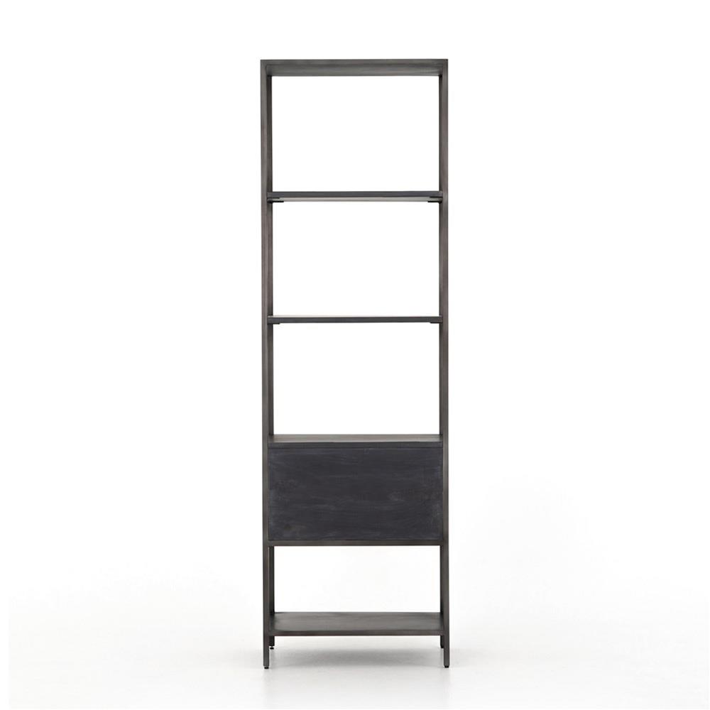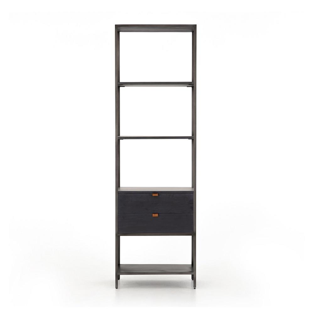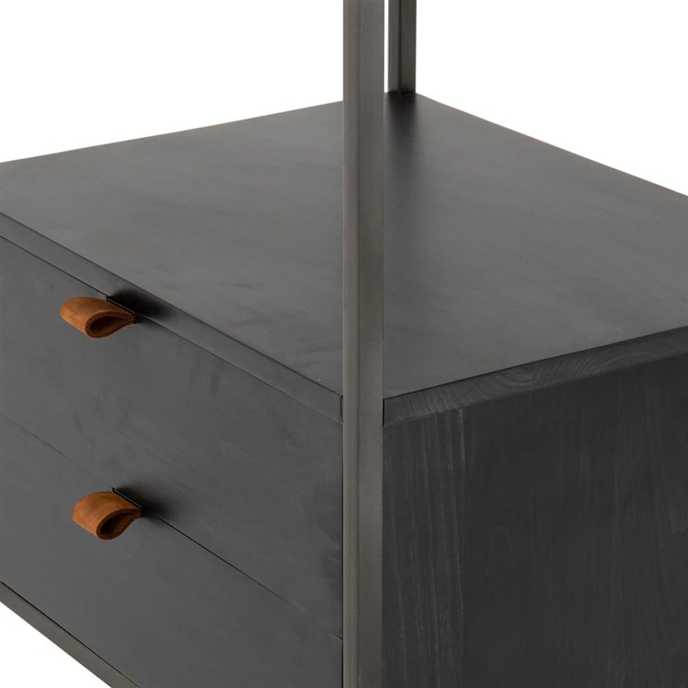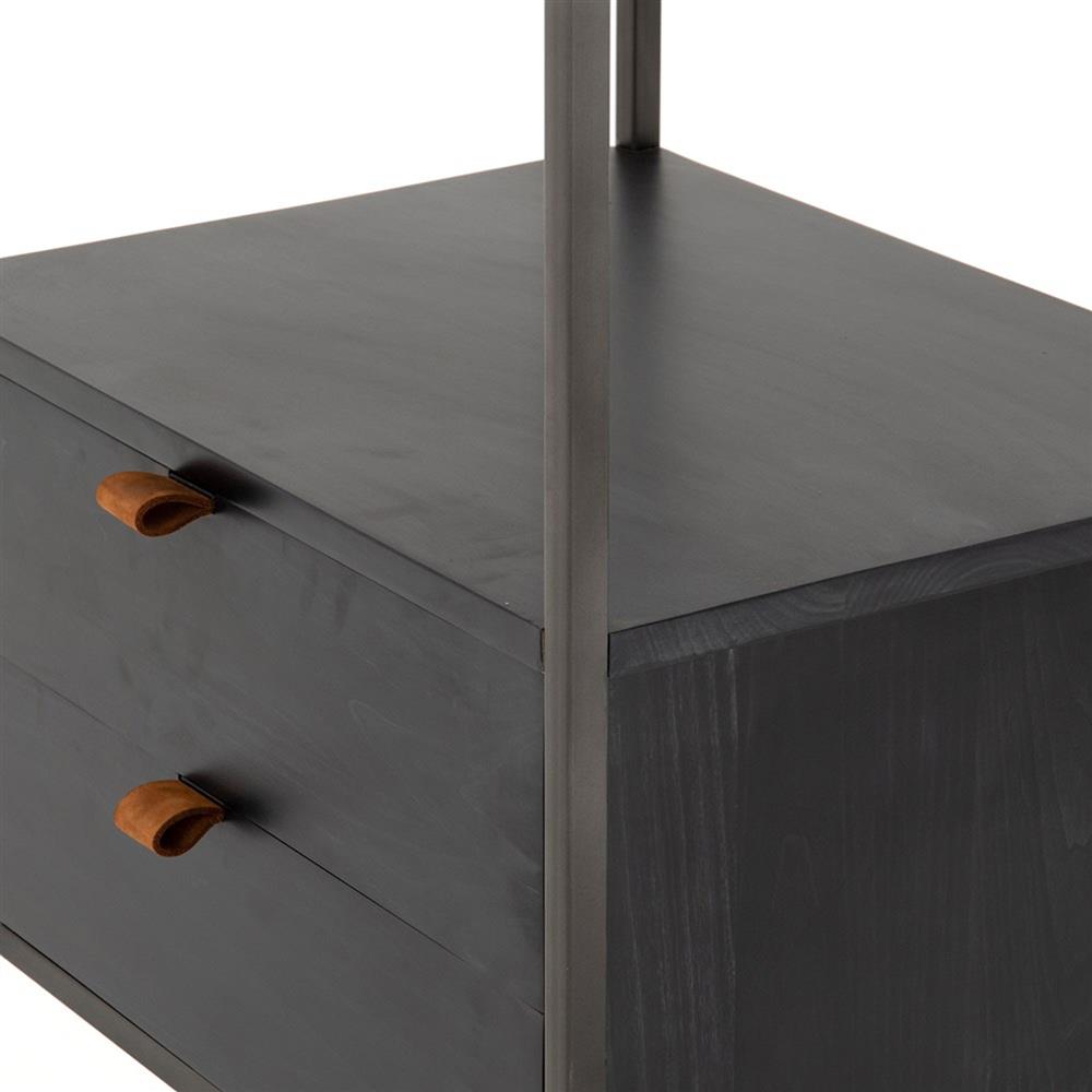 Theodore Industrial Loft Black Wood Grey Iron Frame 2 Drawer Display Bookcase