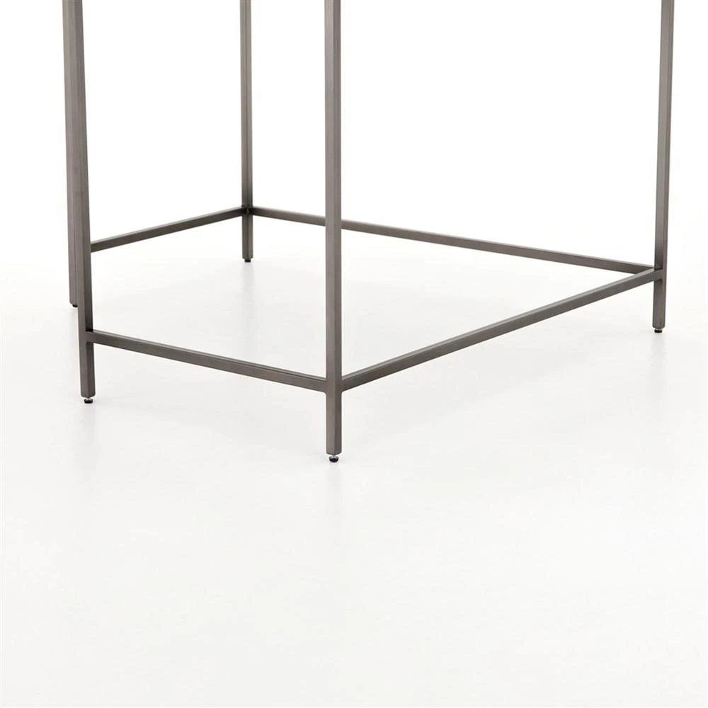 • Aaren Modern Classic White Stone Top Grey Wood Nightstand|Kathy Kuo Home