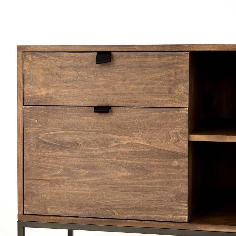 Theodore Industrial Loft Brown Wood Grey Iron 4 Drawer Filing Credenza