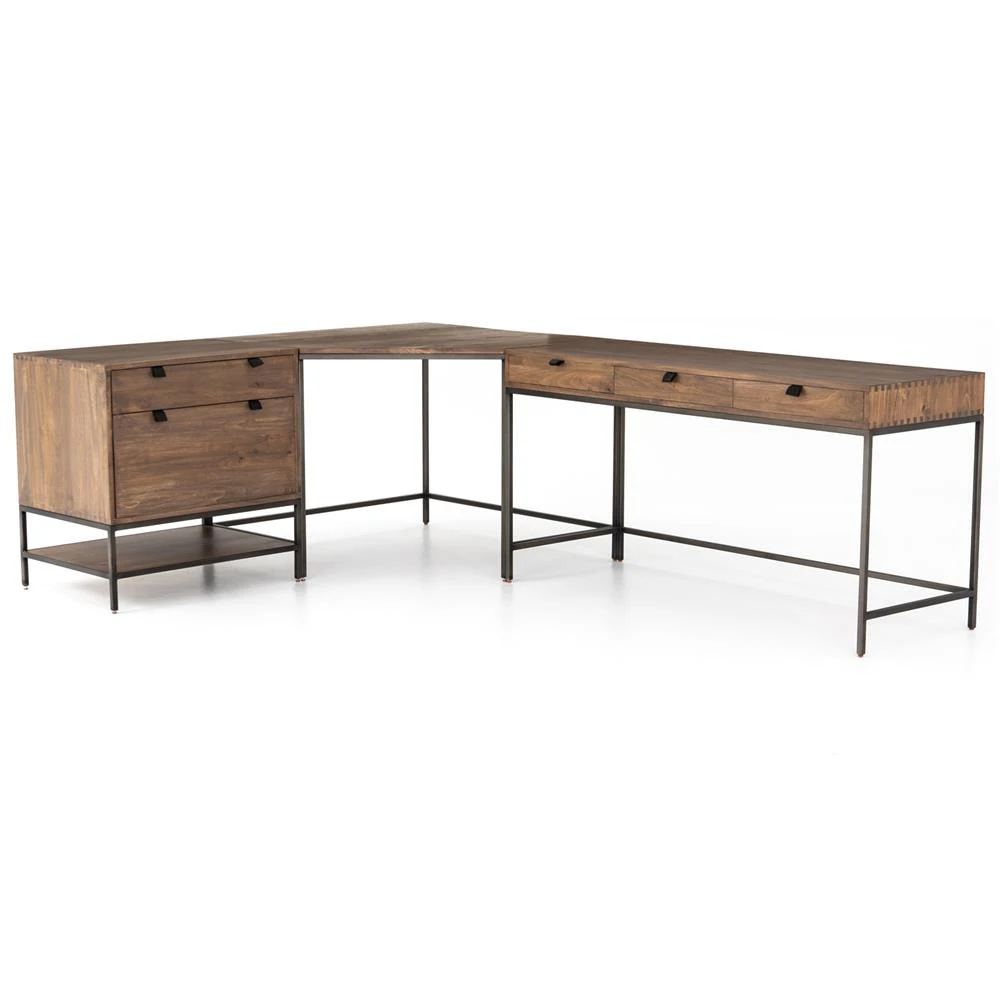 Theodore Industrial Loft Black Wood Iron Corner Desk Set