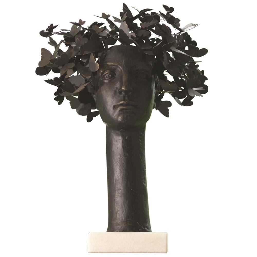 Bodhi Modern Black Iron Marble Base Head Sculpture