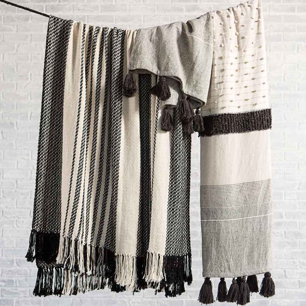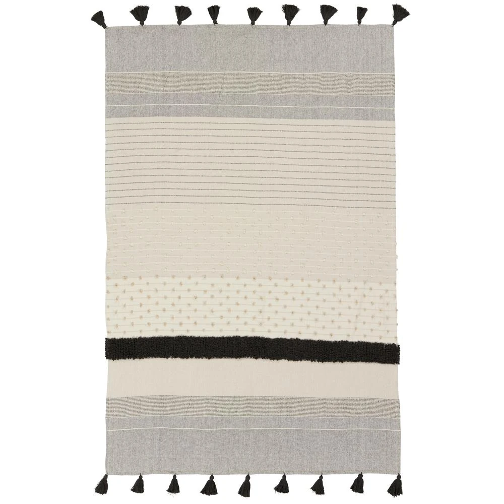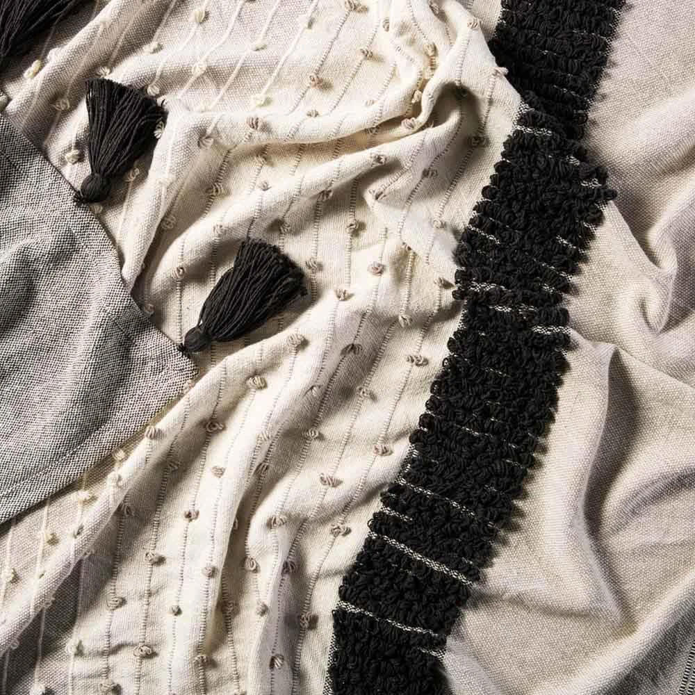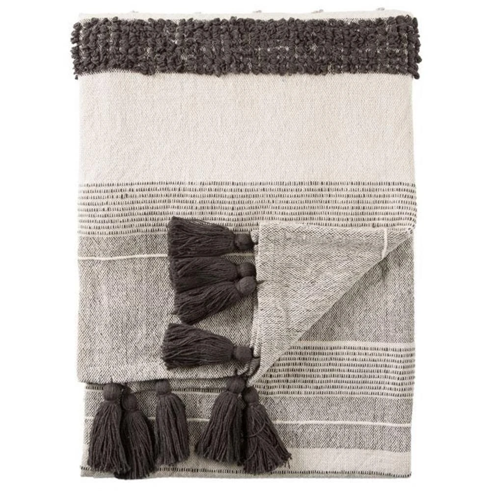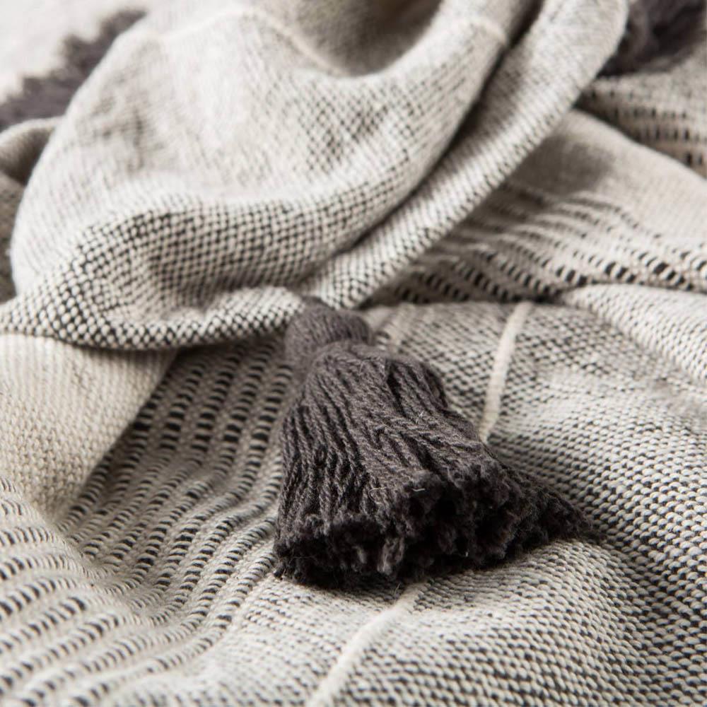 Sojourn Global Grey Patterned Ivory Cotton Throw Blanket