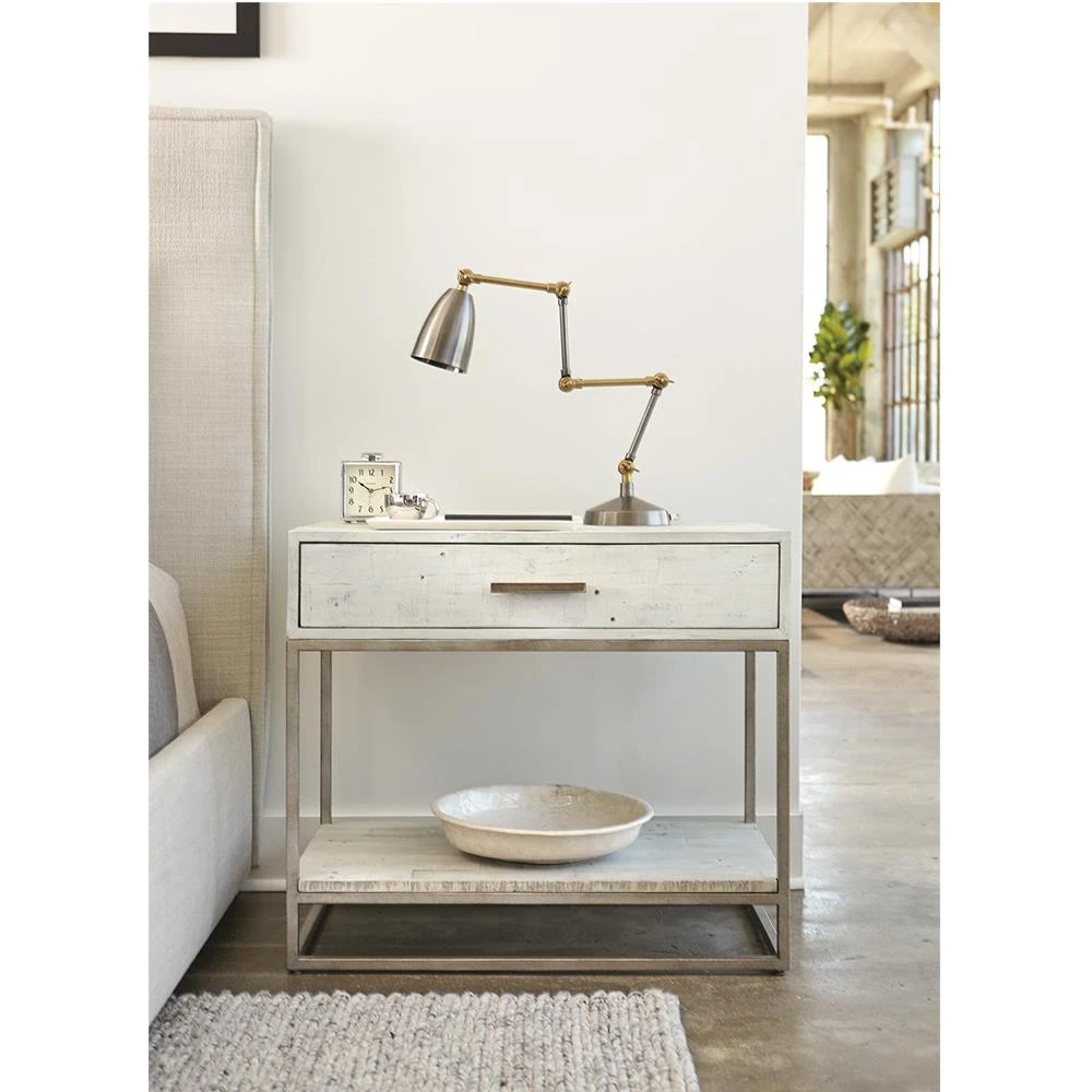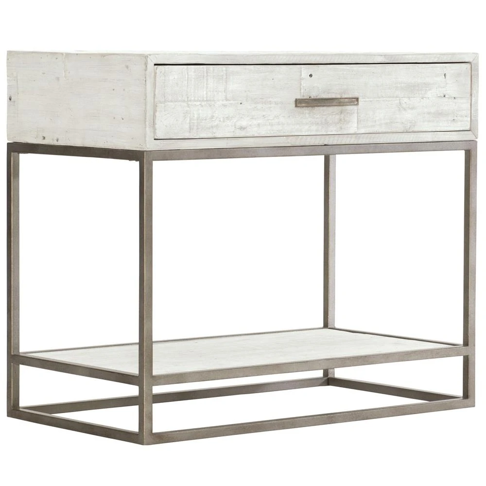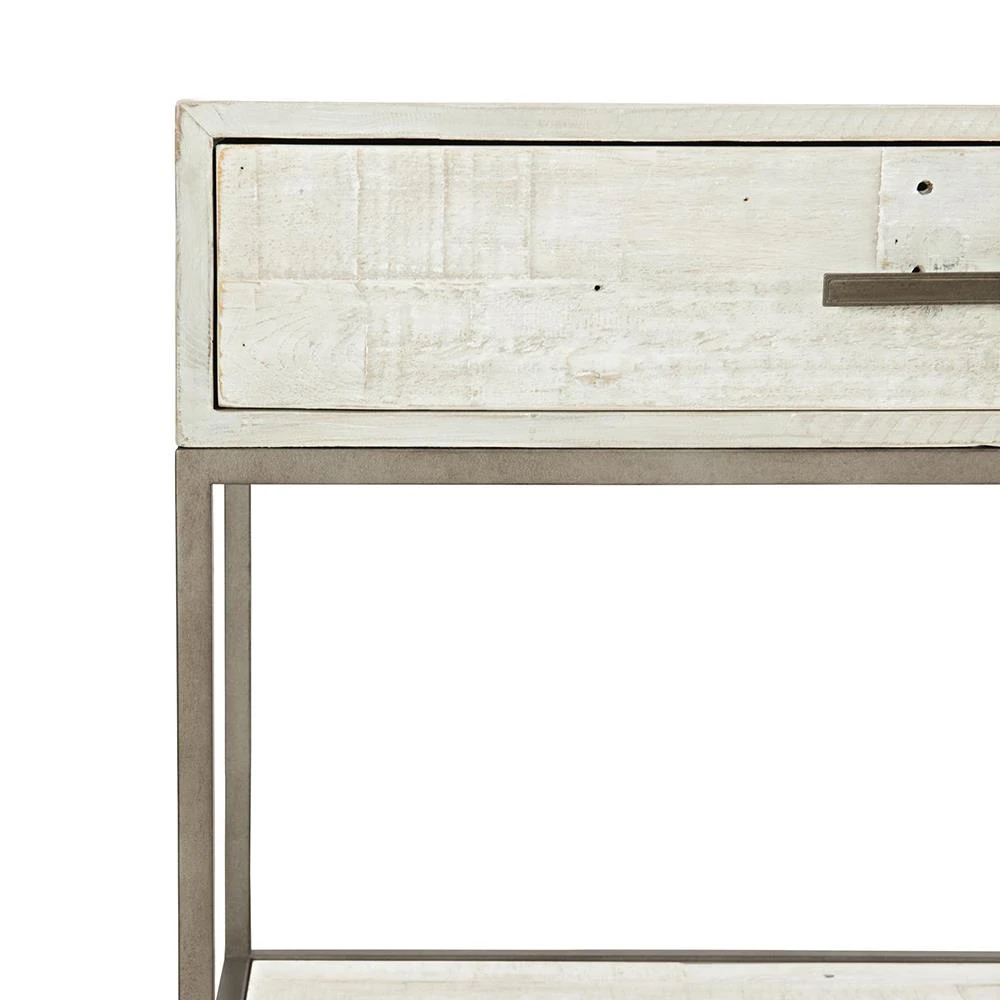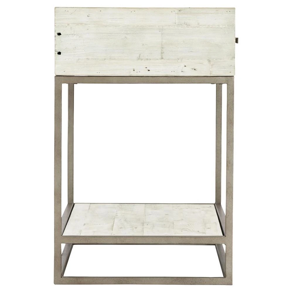 Maxine Industrial Loft Brushed White Wood Steel Nightstand