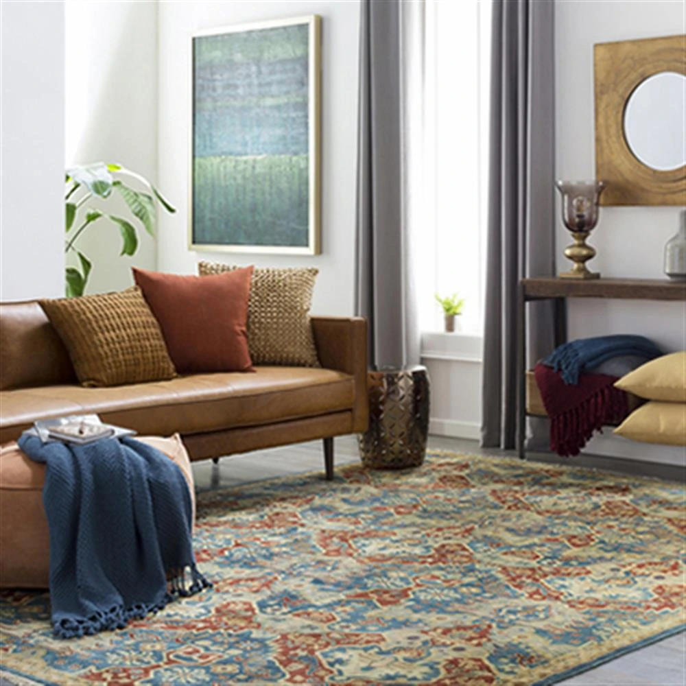 • Adelle Modern Classic Hand Woven Cotton Blue Accent Bed Throw Blanket|Kathy Kuo Home