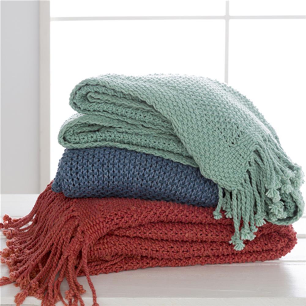 Add some coziness to summer nights outside on your patio with our Agatha Modern Classic Blue Cotton Woven Throw Blanket. Woven from 100 ... more