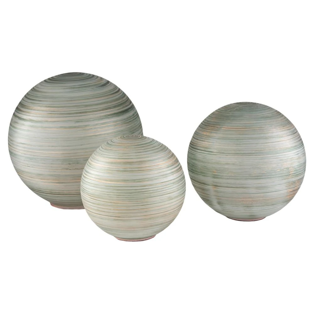Jupiter Coastal Green Glass Orb Outdoor Sculptures - Set of 3