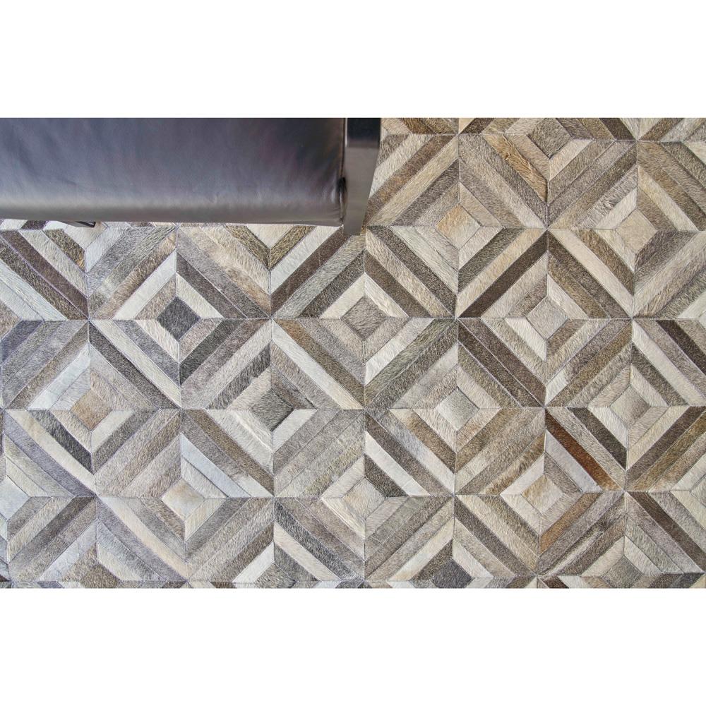 • Modern Grey Leather Hide Herringbone Patterned Rug - 5G??x8GǦ|Kathy Kuo Home