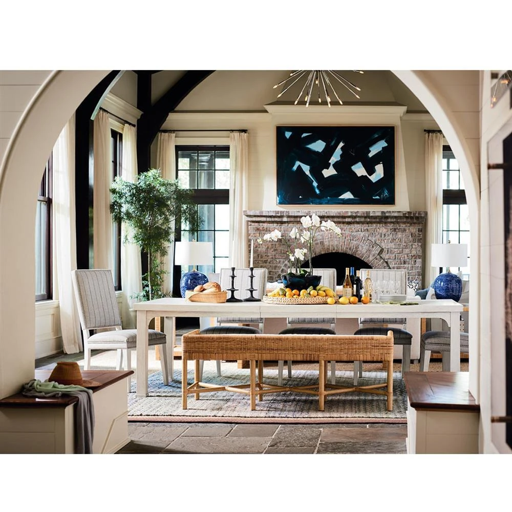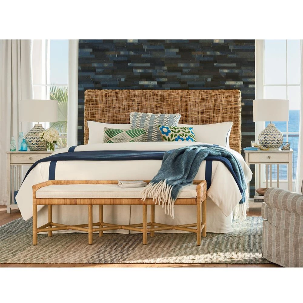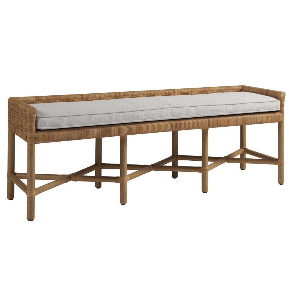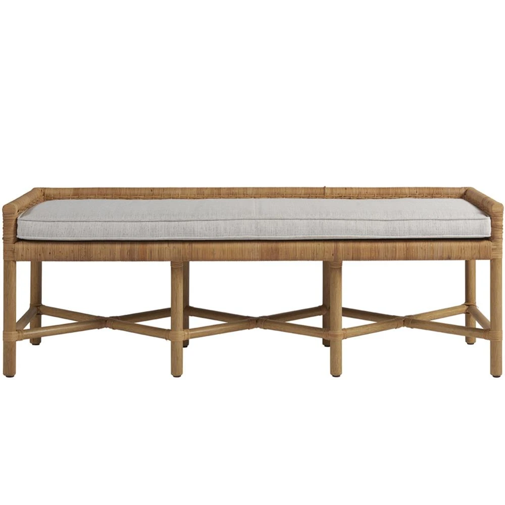 Ariah Coastal Beach White Upholstered Wicker Rattan Bench