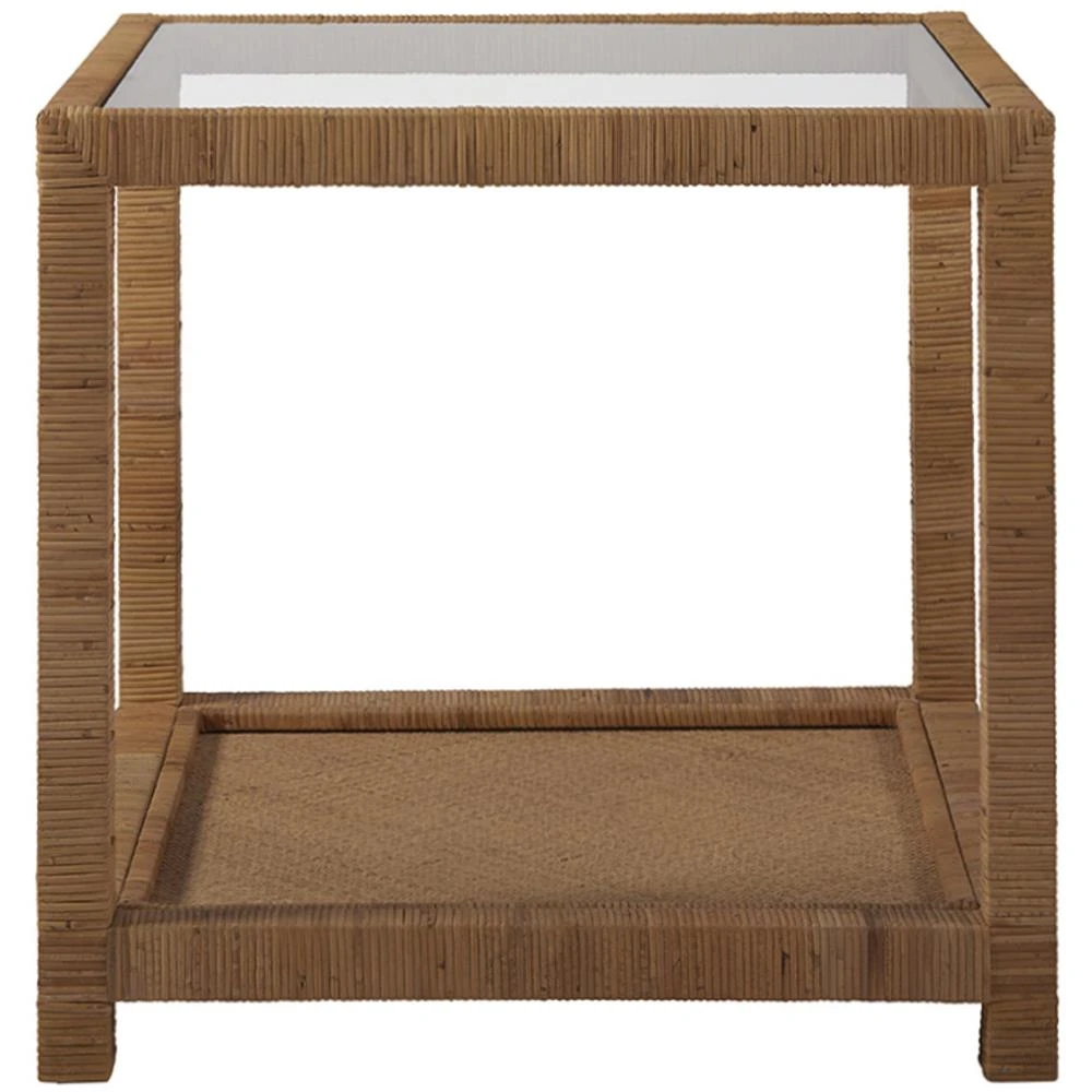 Ariah Coastal Beach Glass Top Brown Rattan Side End Table