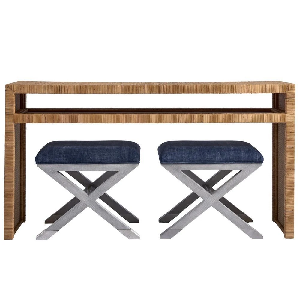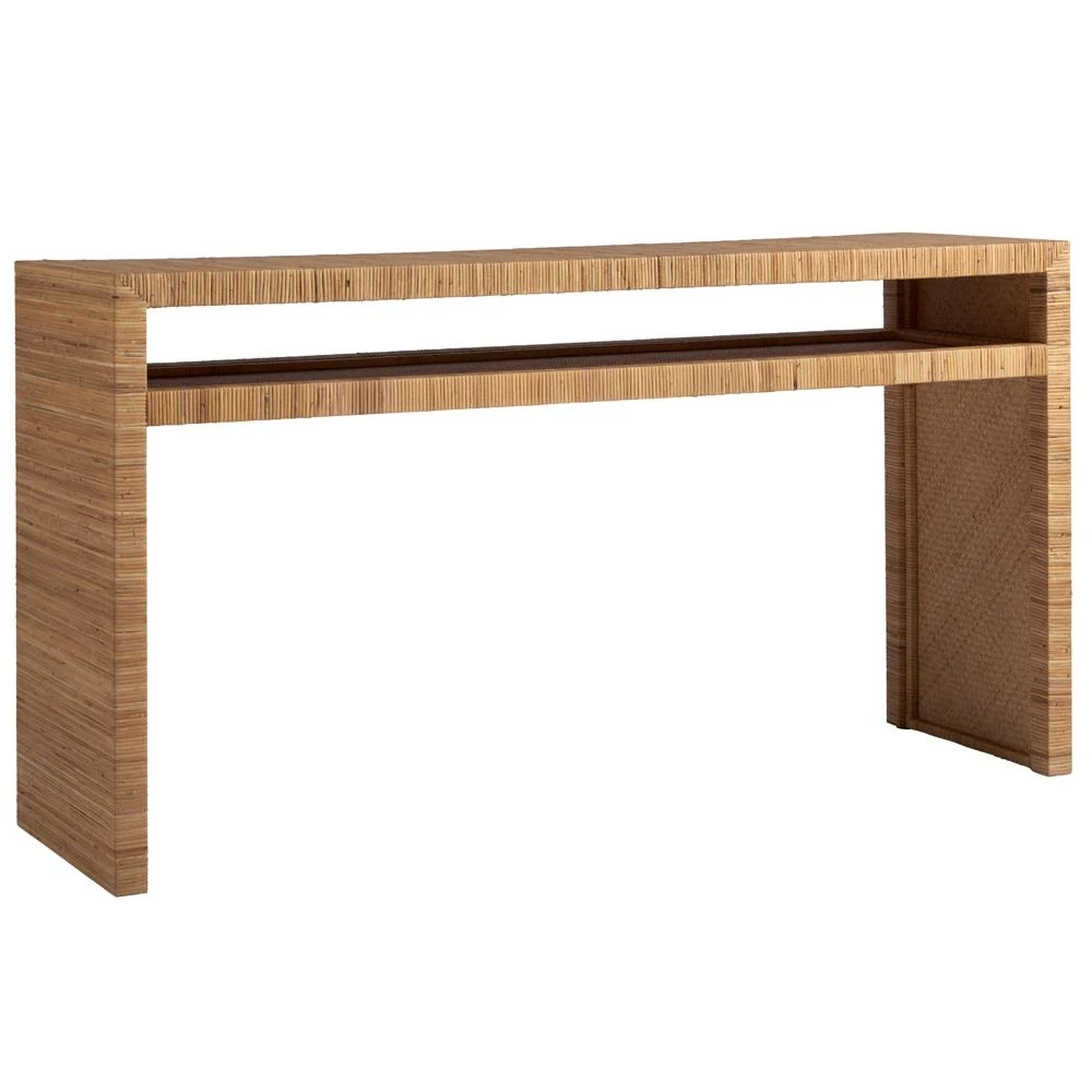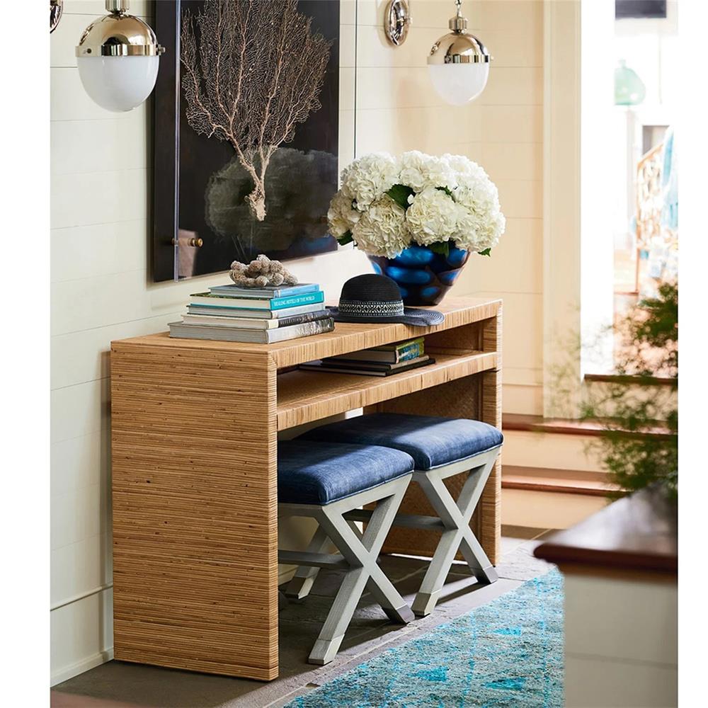 • Worlds Away Gideon Coastal Beach Natural Rattan Console Table|Kathy Kuo Home