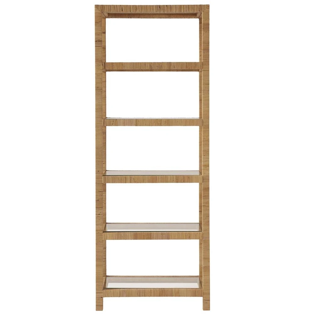 • Mako Coastal Beach Brown Woven Rattan Etagere|Kathy Kuo Home