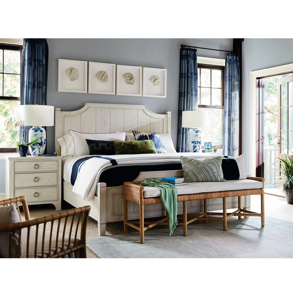 • Riona Coastal Beach Blue Striped Performance White Wood Bed - Full|Kathy Kuo Home