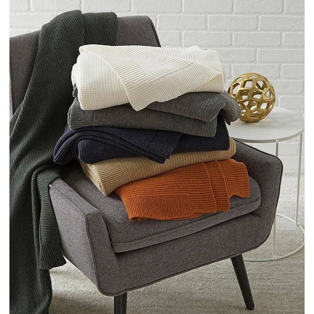 • Sferra Modern Pettra Eggshell White Ribbed Lambs Wool Throw Blanket|Kathy Kuo Home