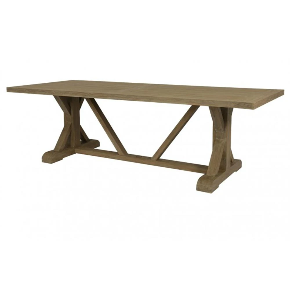 • Cody Coastal Beach Angled Base Rectangular Washed Brown Teak Outdoor Dining Table - 86.5"W|Kathy Kuo Home